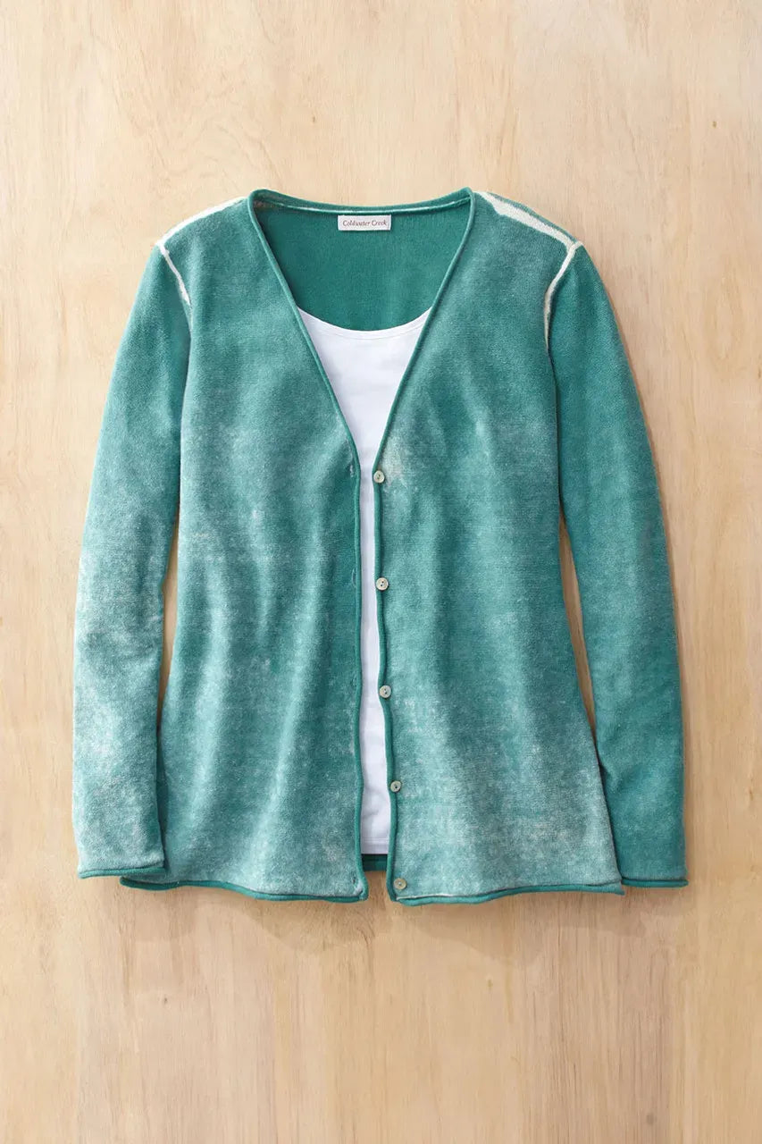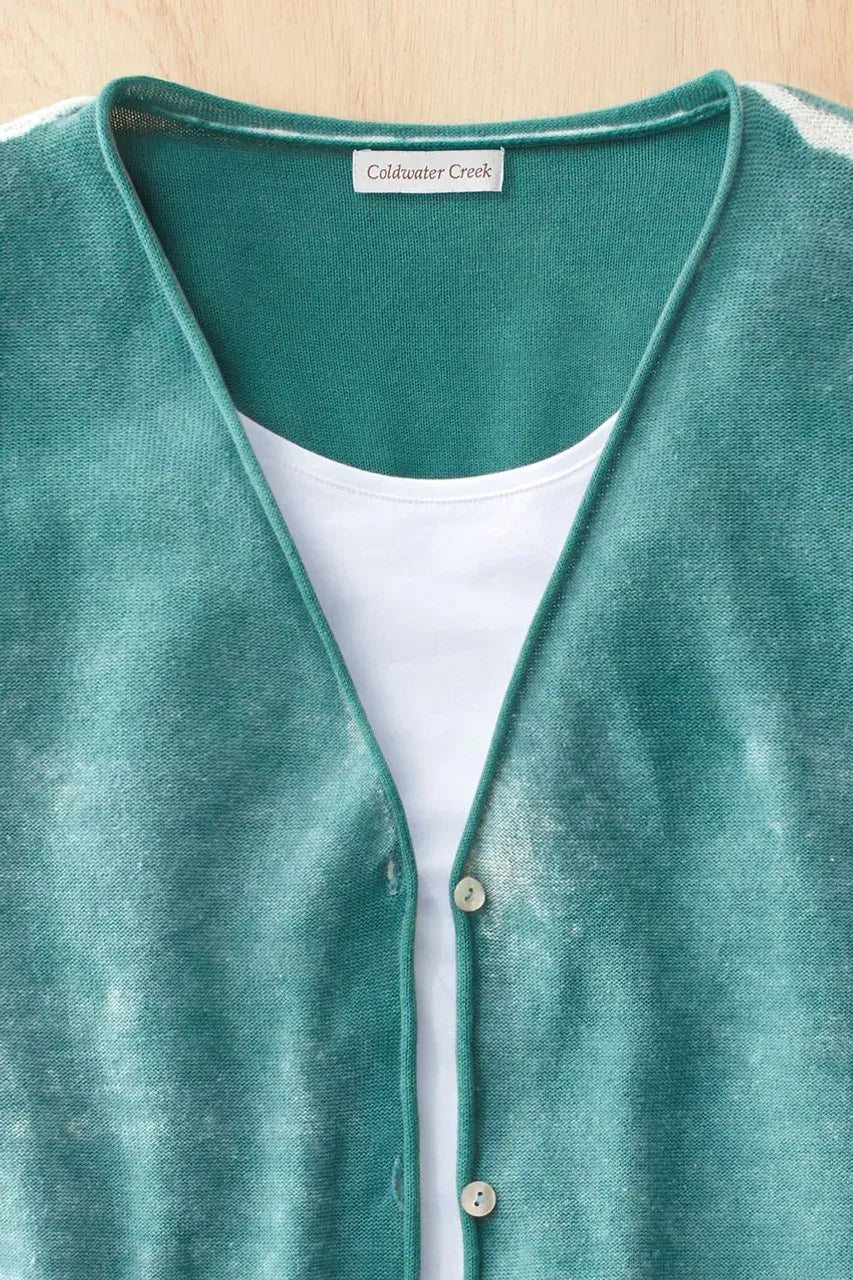 Product Description This lightweight cardigan makes color an art – uniquely dyed for a vintage vibe, so each sweater is one of a kind. Soft and drapey, it’s highlighted with accent seams and rolled edges.