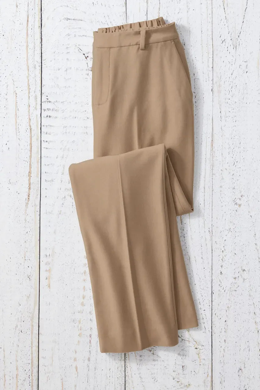 Product Description The Gallery pants you love – now even more comfortable! We’ve added elastic to the back waistband for an easier fit. Still smooth and easy, these tailored pants feature two-way stretch in a midweight twill. Fly front with belt loops, slant front and welt back pockets.