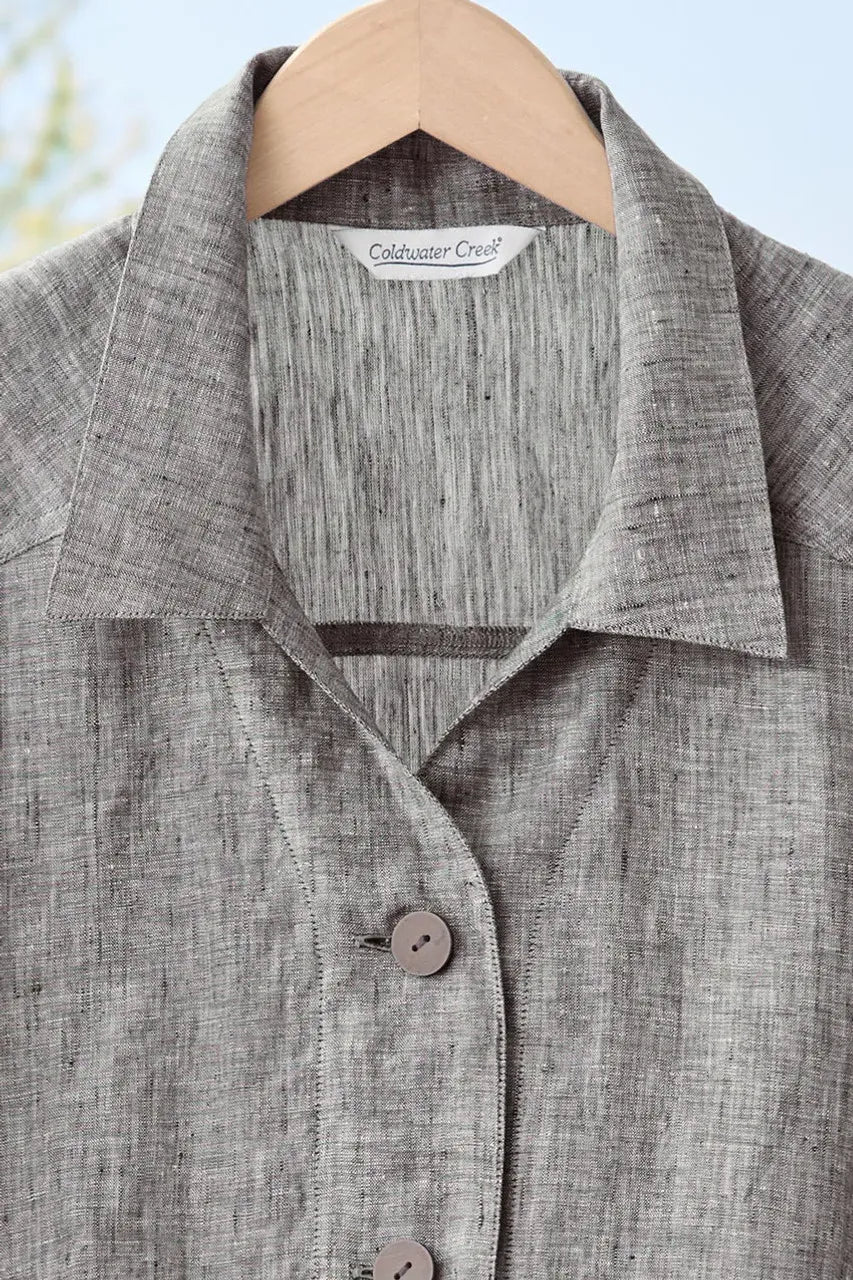 Product Description Our button-front, short-sleeve linen top demonstrates simple artistry with a natural touch. Lightweight and breathable in natural European-grown linen, and cross-dyed for beautiful color depth – it’s a step above casual. Dolman sleeves with front and back shoulder seams.