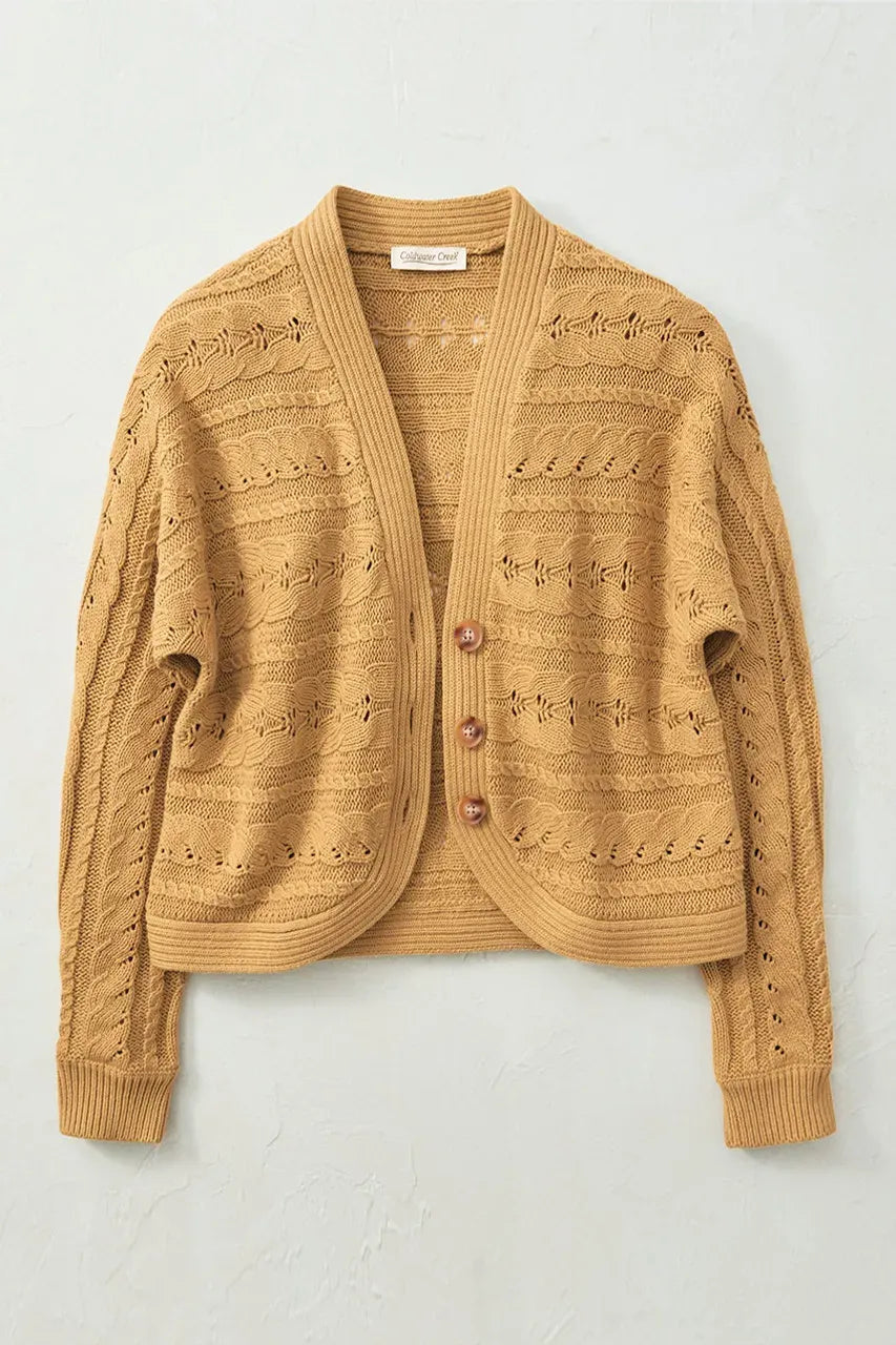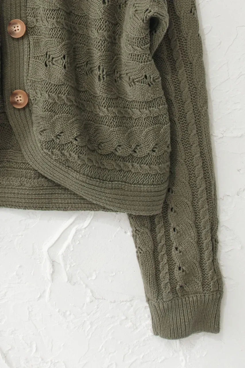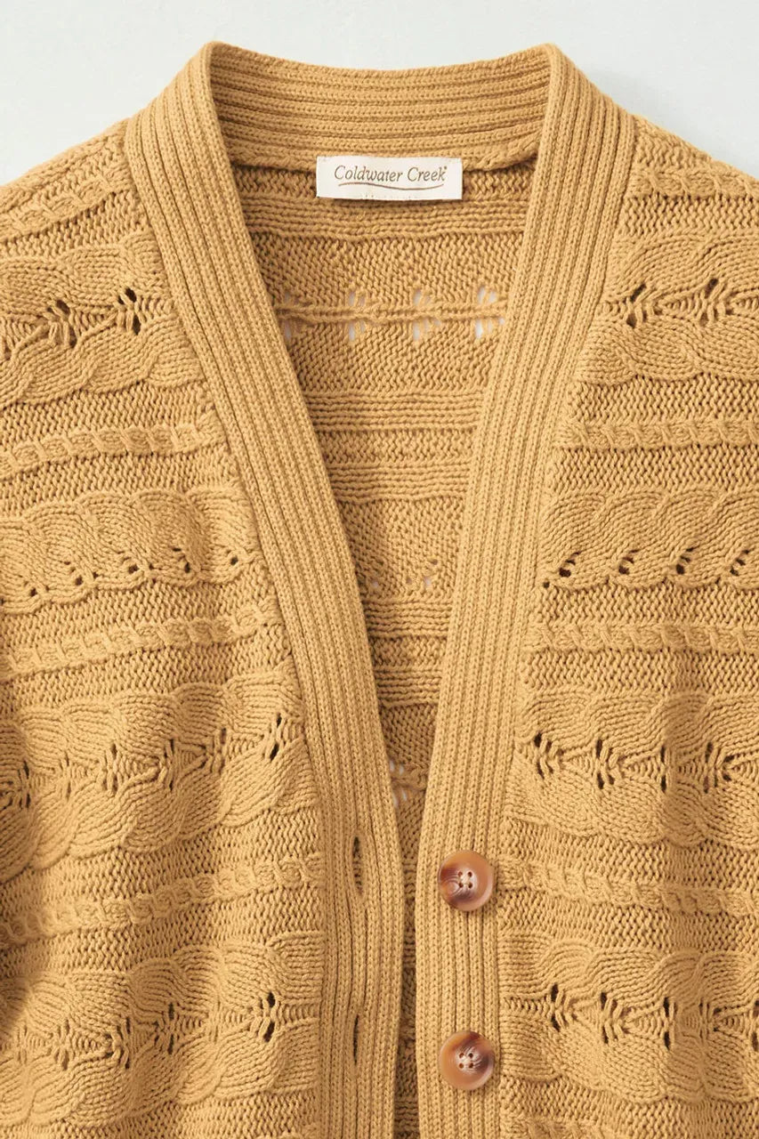 Product Description This mixed-cable cardigan is versatile and flattering.