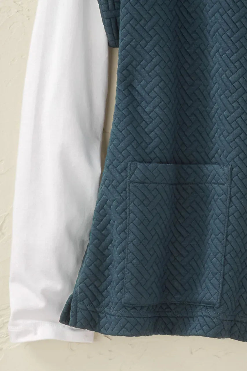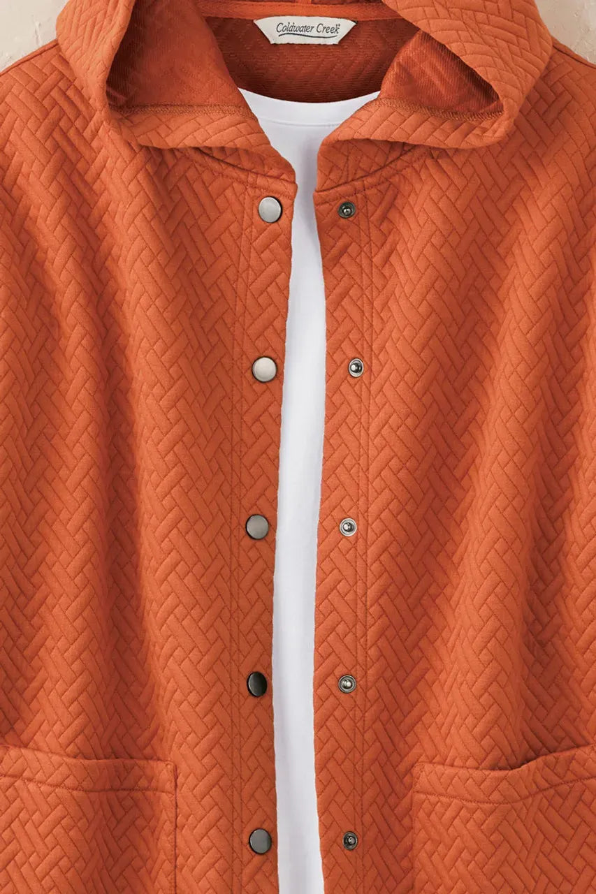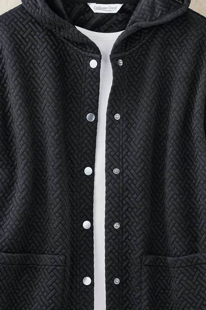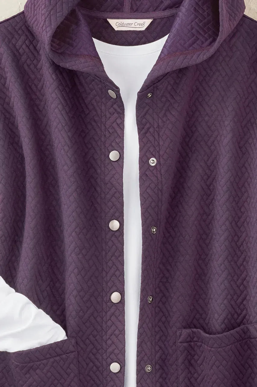Product Description Refresh your layered look with this fun new vest, ideal for a little extra warmth. Soft, snap-front style is quilted all over, with a hood, roomy dolman cap sleeves and patch pockets. Side-slit hem.