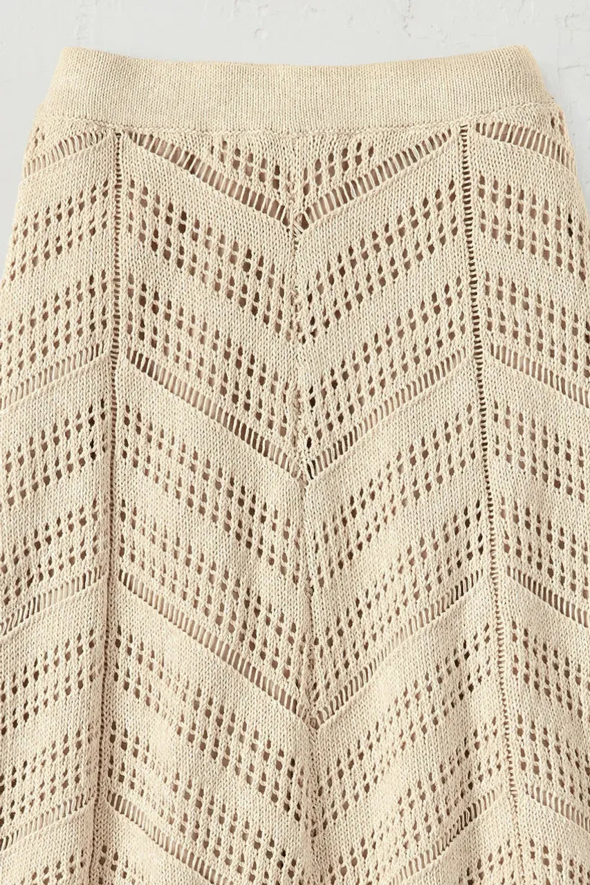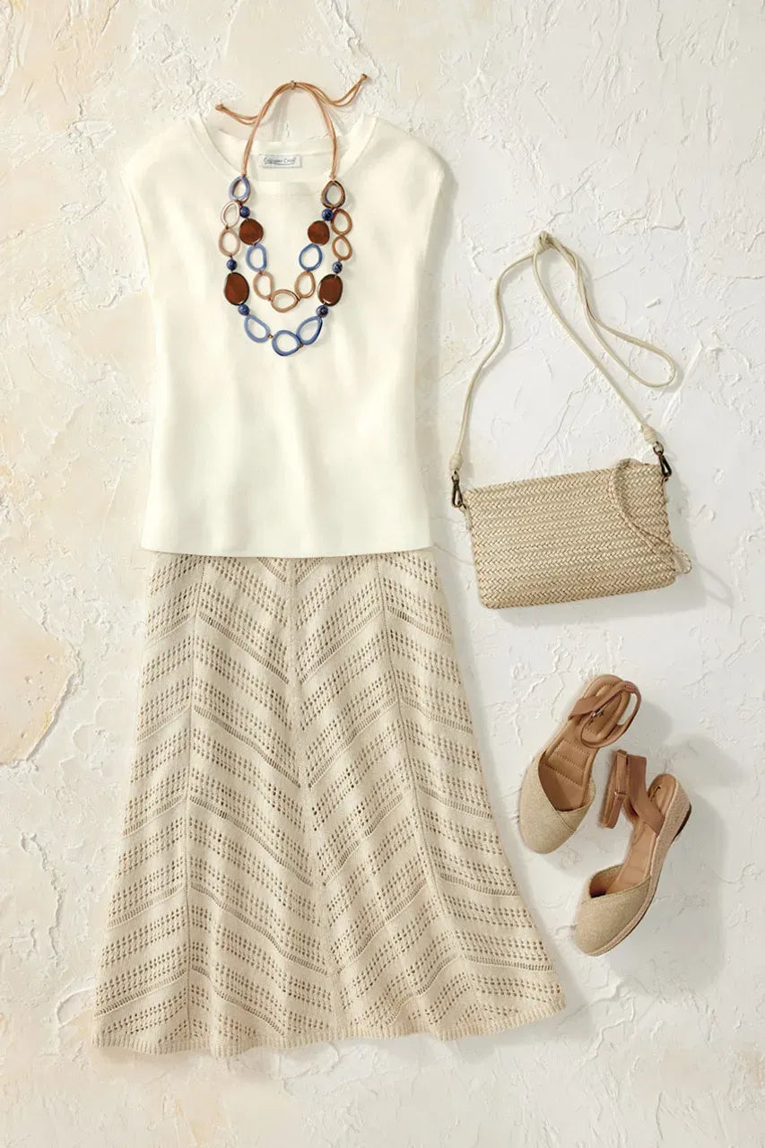Product Description A little boho spirit, plus beautiful versatility. This soft sweater skirt features chevron-patterned crochet details on slender panels for artful texture and drape. Midweight, with pull-on waist and full lining. 77" sweep.