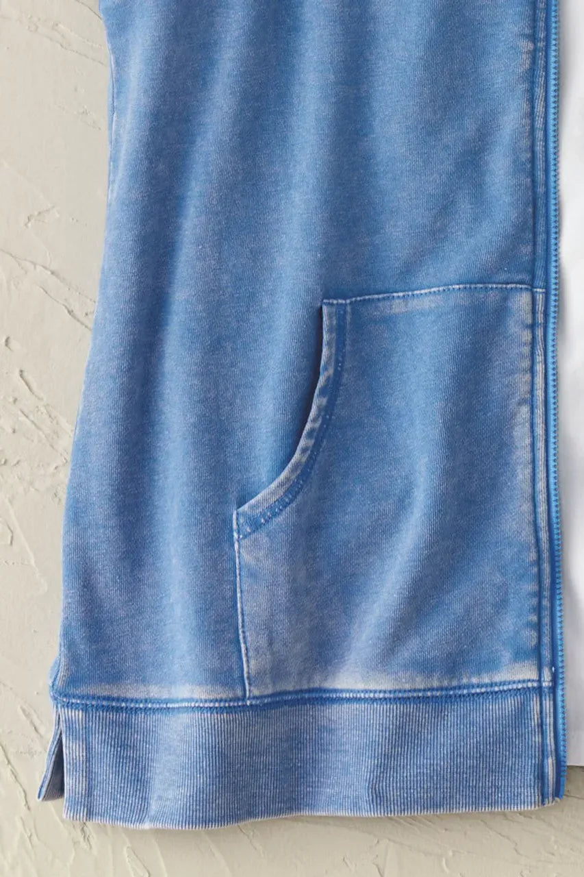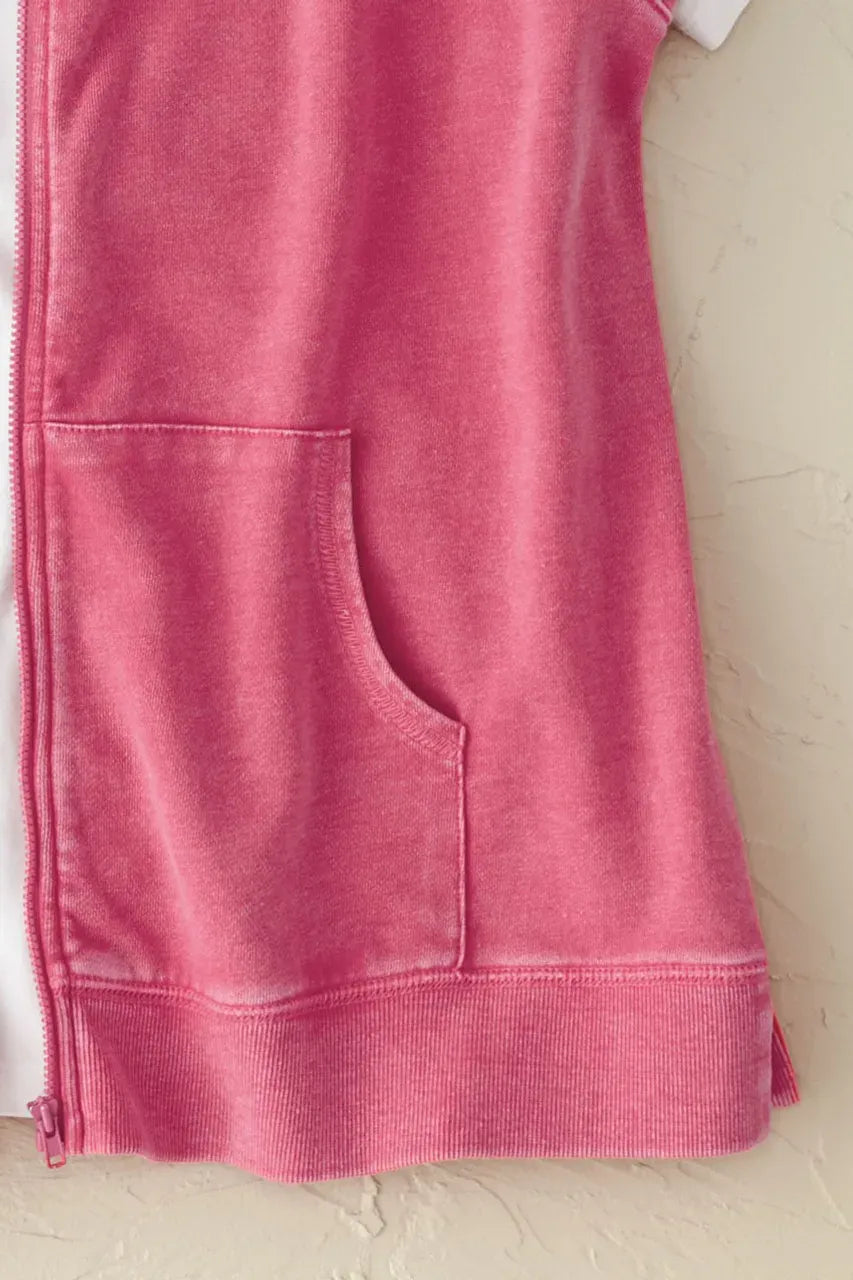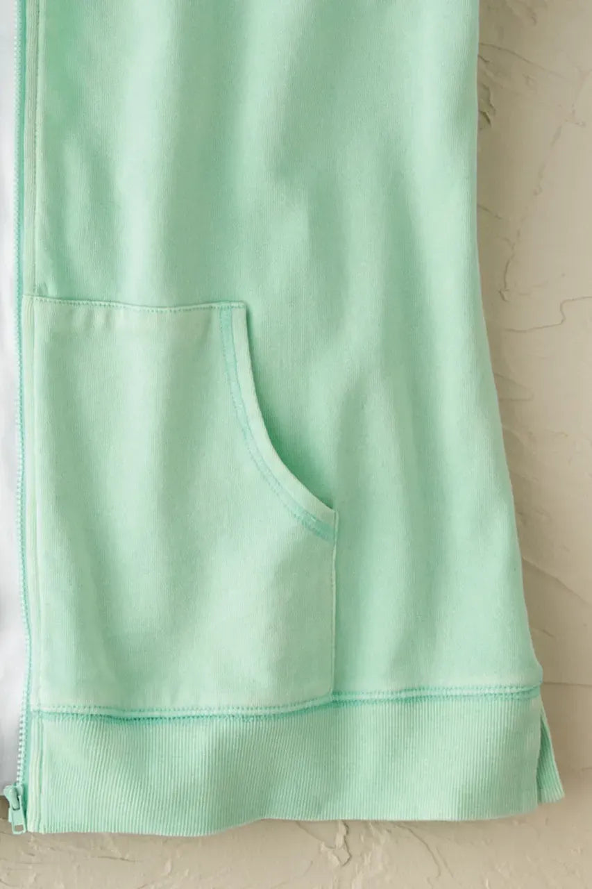 Product Description Anytime is colorwash time! Our favorite vintage-washed sweatshirt is ready for a new season in this fun, versatile silhouette. Lightweight hooded style has a front zip and extended-shoulder cap sleeves for easy layering. Ribbed trim, slit hem.