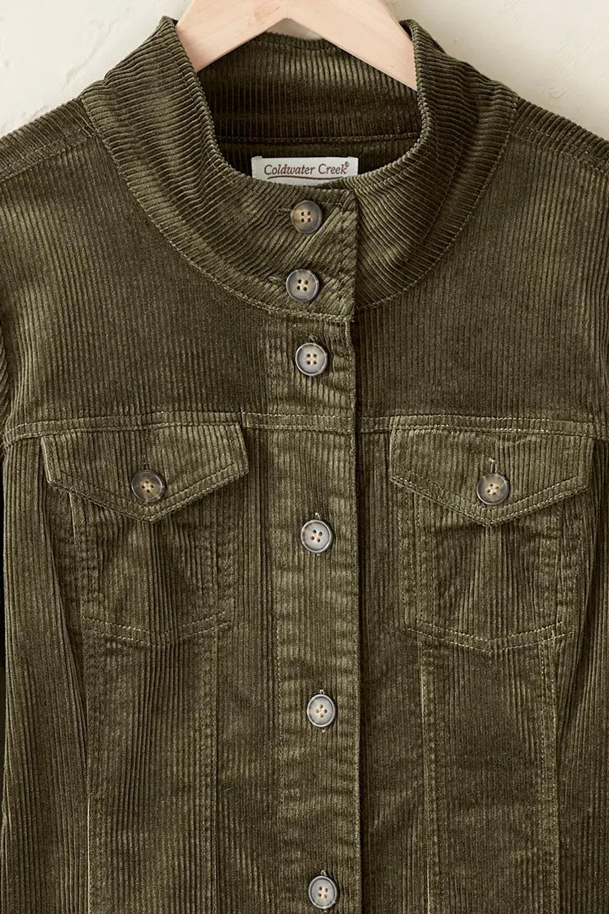 Count the ways you’ll wear it. Our soft-stretch corduroy dress can be worn alone or open as a duster, and the neckline can be left open or buttoned up as a mockneck. Button front with vertical seaming, side and chest pockets.