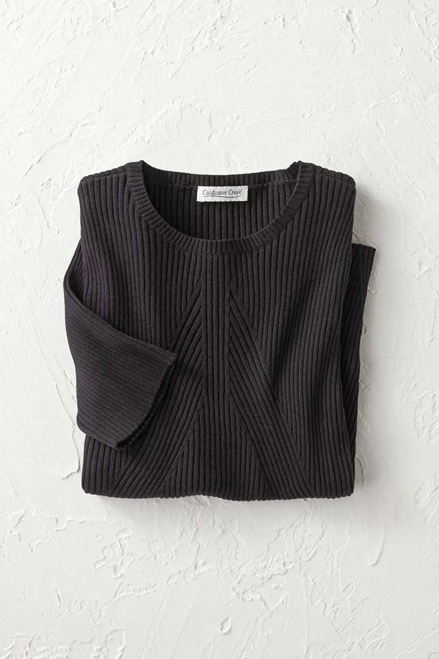 Product Description Ingeniously flattering and versatile, this sweater is the perfect go-between – from season to season, to layer or not, and from day to evening. Angled front ribbing, elbow-length sleeves.