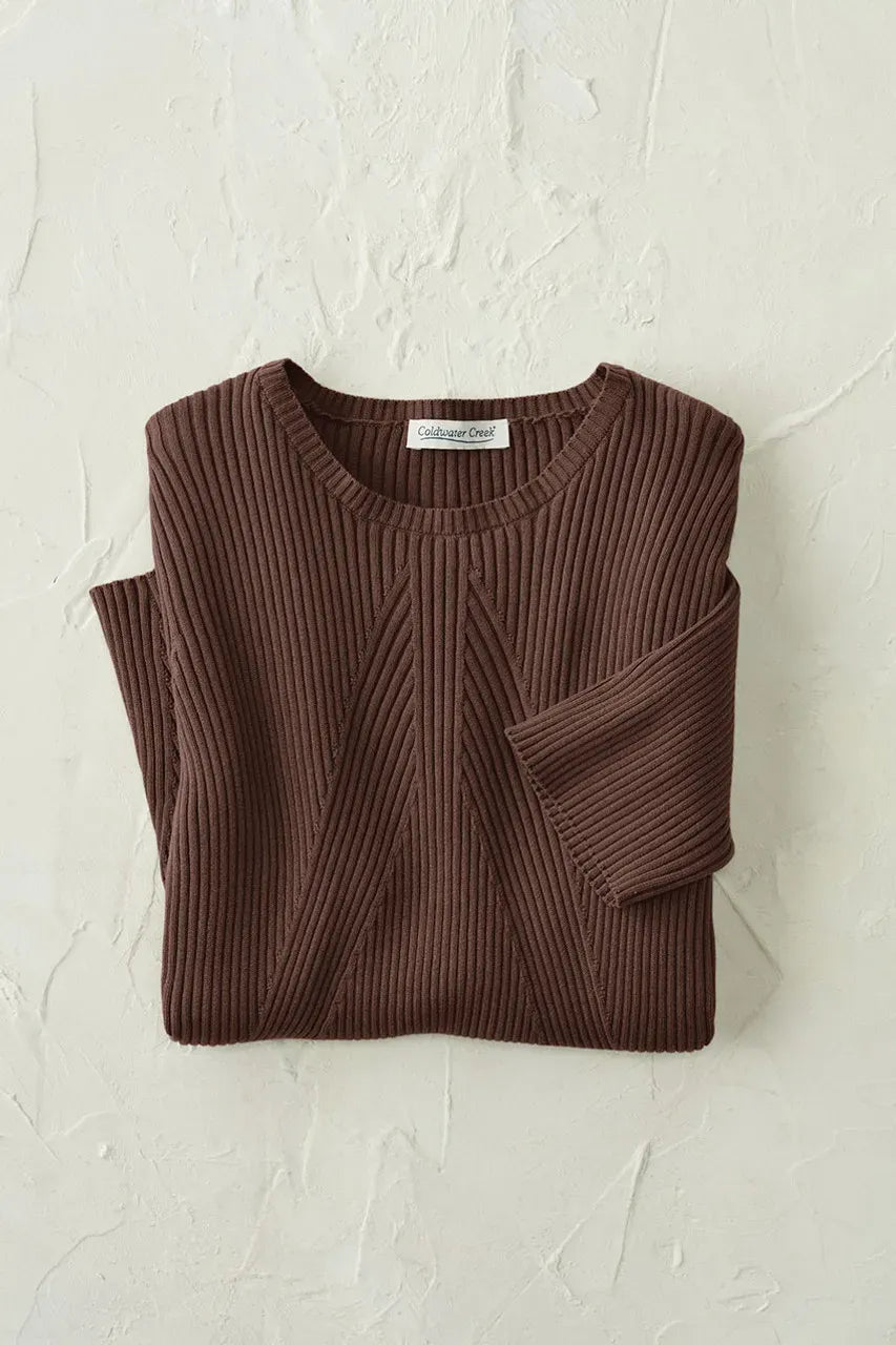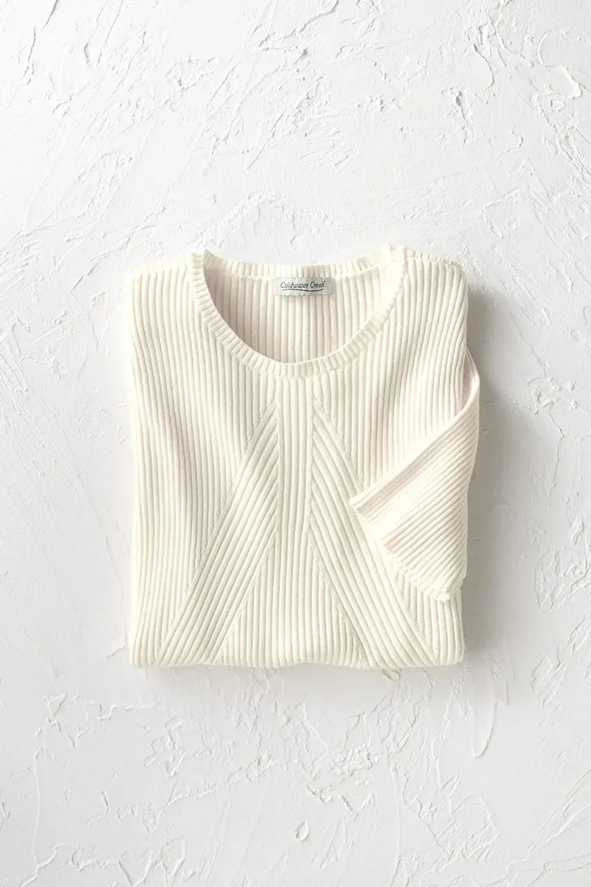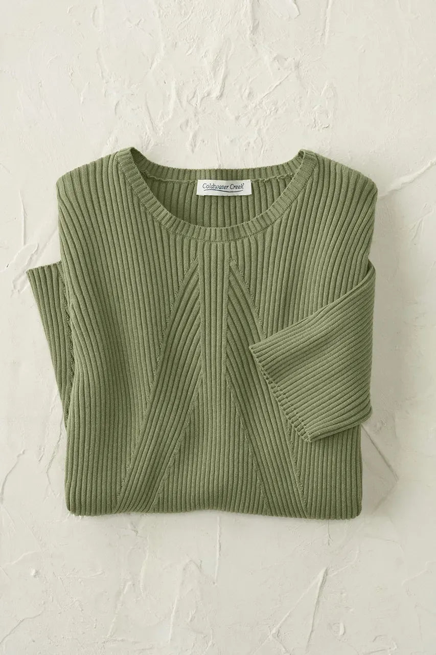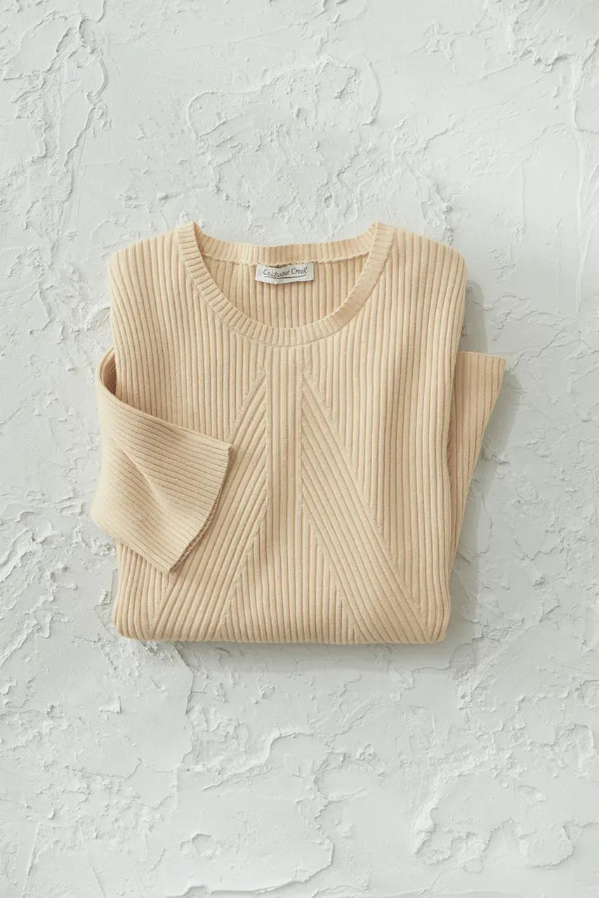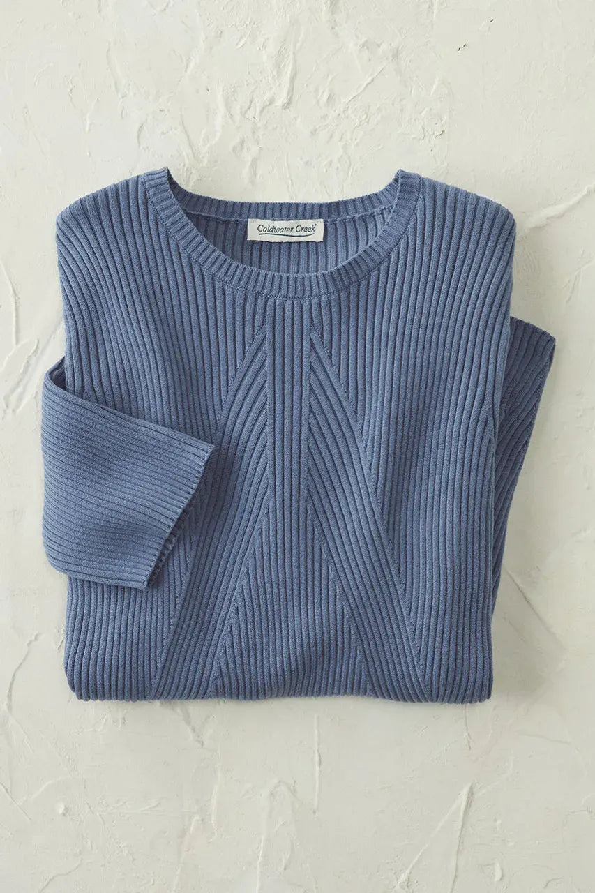 Ingeniously flattering and versatile, this sweater is the perfect go-between – from season to season, to layer or not, and from day to evening. Angled front ribbing, elbow-length sleeves.