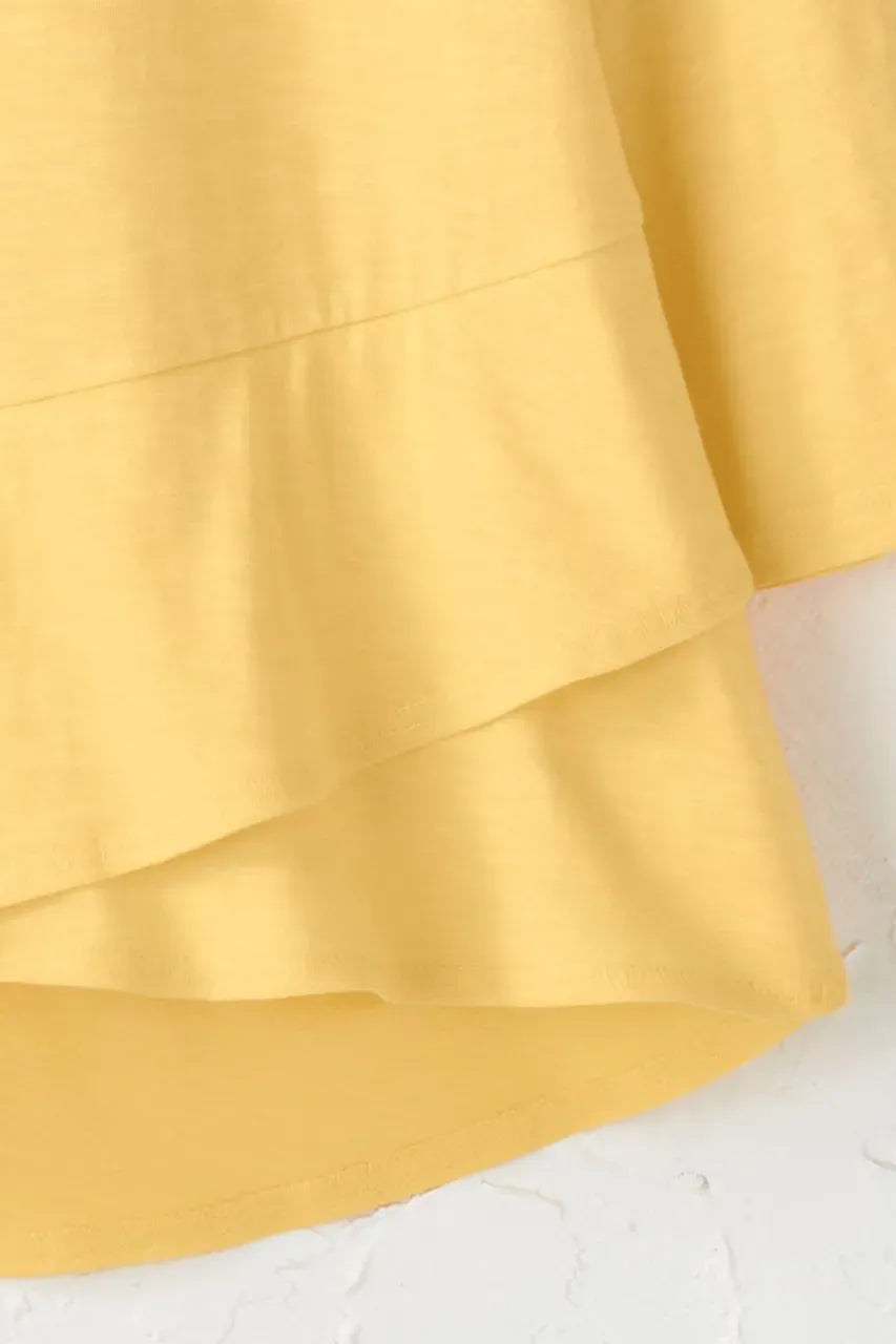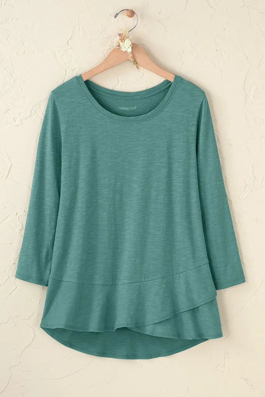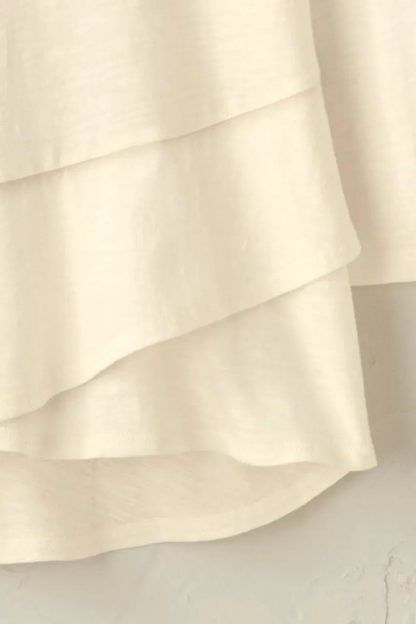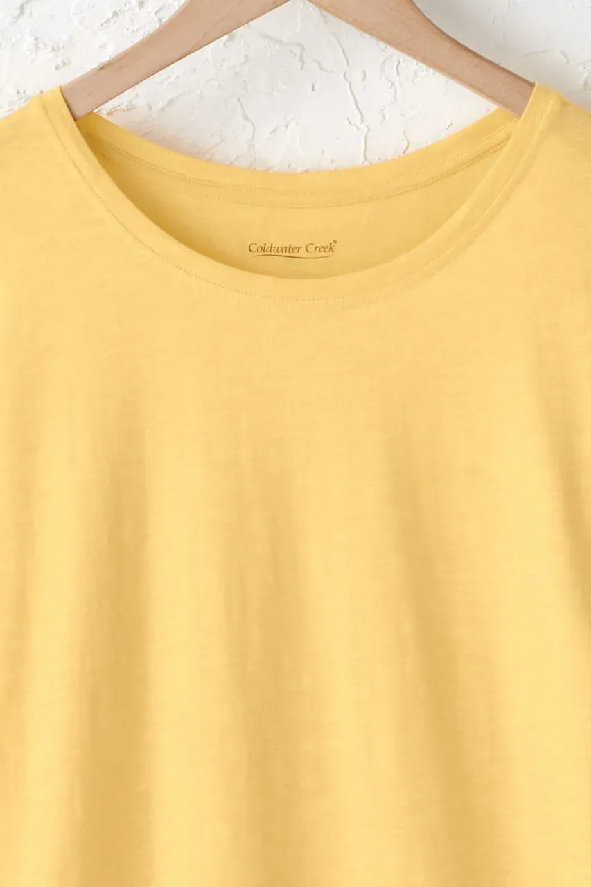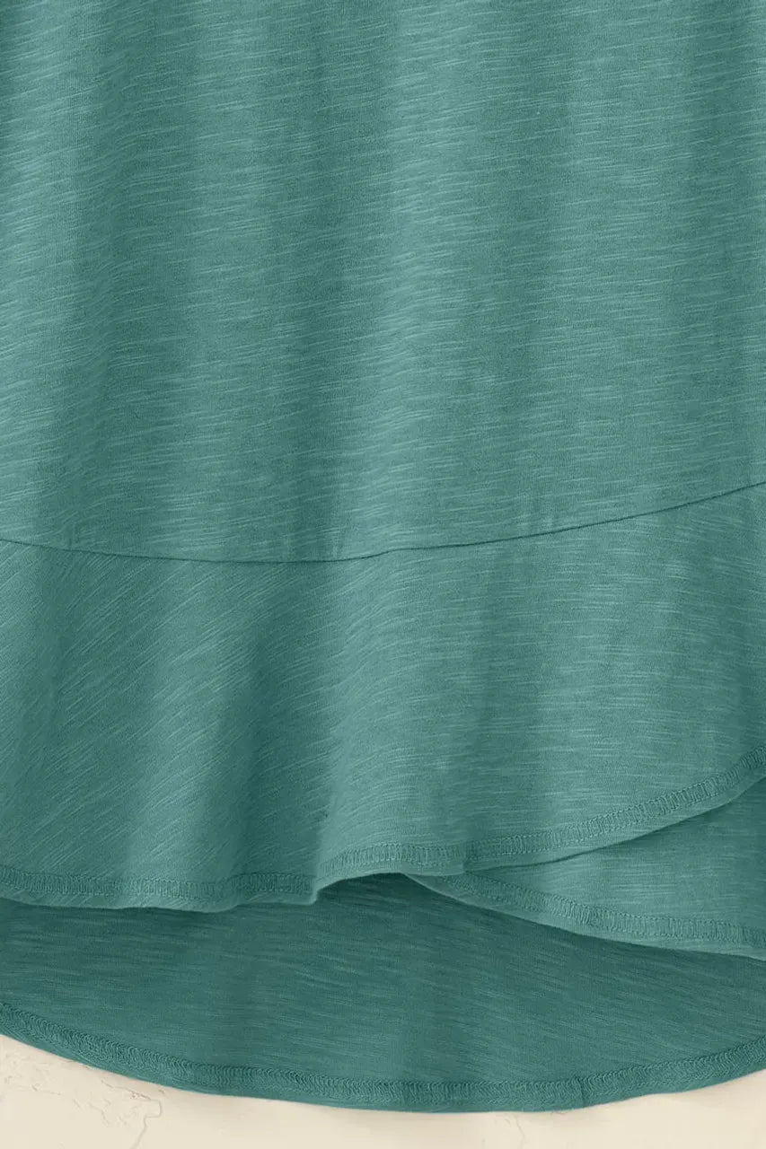Our soft cotton slub, with an extra-special touch. A flounced crossover hem and slightly lighter weight make this tee perfect for spring-into-summer.