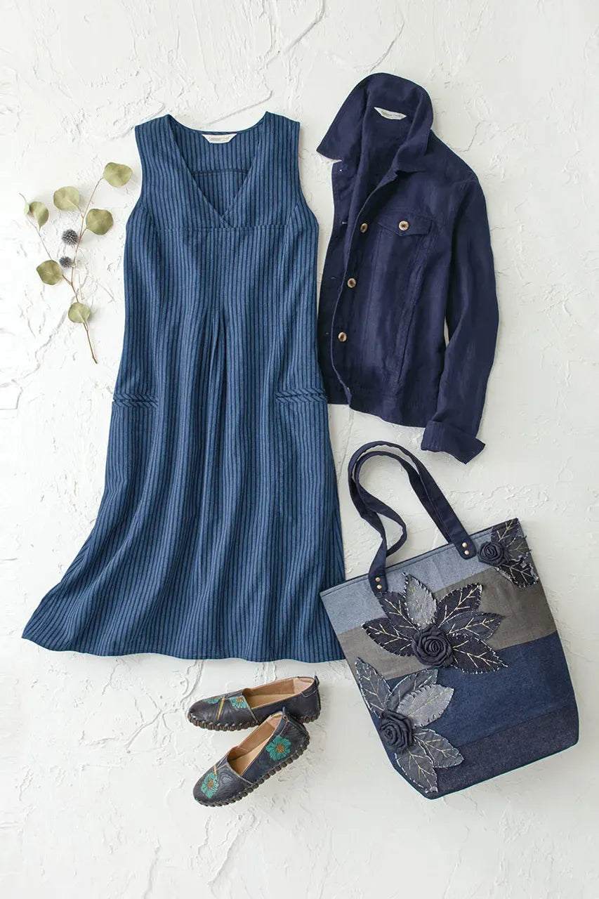 Put a new spin on Saturday, or any day that calls for an easy summer dress. Our fresh striped dress is updated with a slightly less full skirt – but still keeps its airy, generous design for great breathability. Front pleat, back yoke, slit pockets.