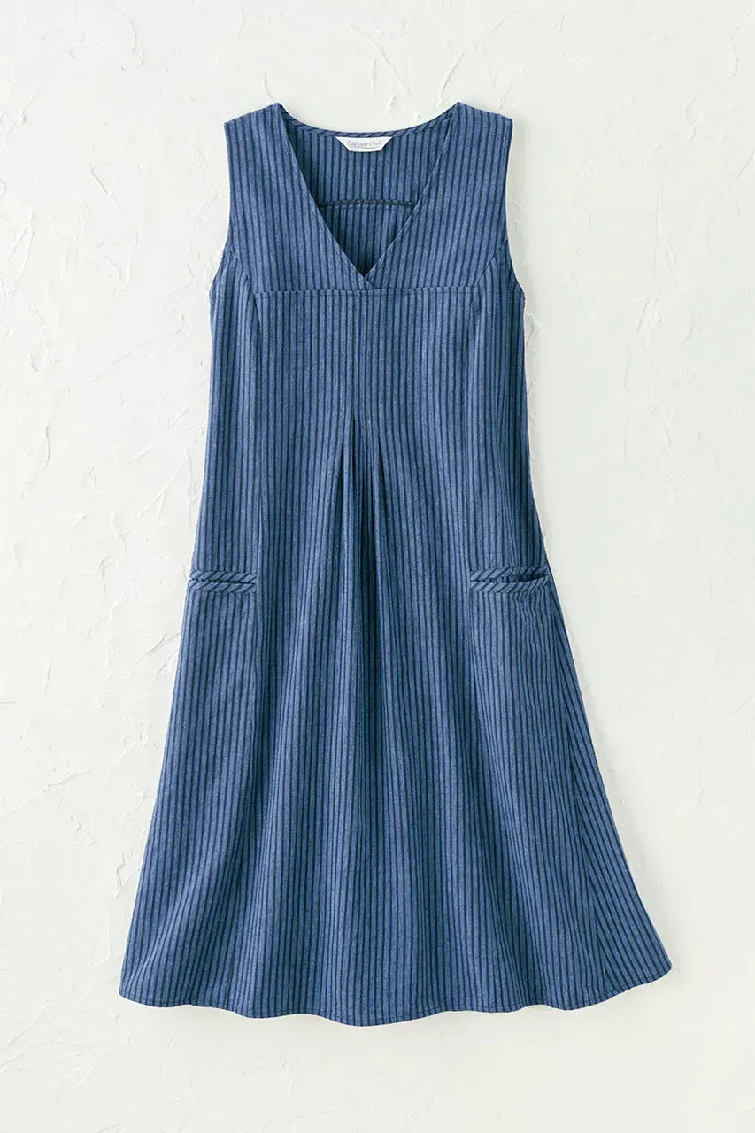 Product Description Put a new spin on Saturday, or any day that calls for an easy summer dress. Our fresh striped dress is updated with a slightly less full skirt – but still keeps its airy, generous design for great breathability. Front pleat, back yoke, slit pockets.