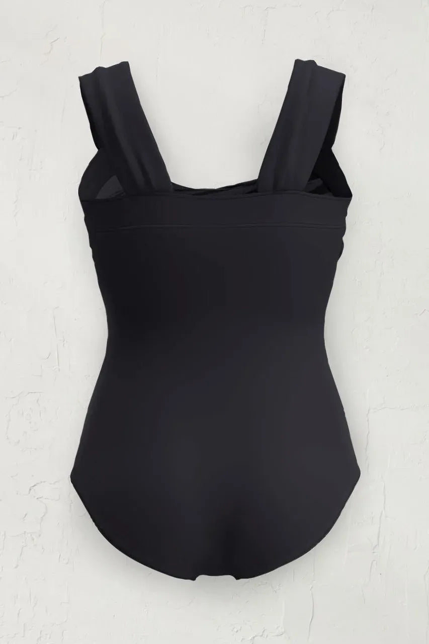 Our one-piece suit with an updated fit – ruched at the waist, bust and straps, while our inner power mesh ShapeMe panel smooths and shapes inside. Soft, wide straps provide an exceptionally comfortable, flattering fit. Silicone grip dots keep the leg openings in place. Shelf bra with fixed cups, straight back. UPF 30 for UV protection, chlorine resistant.