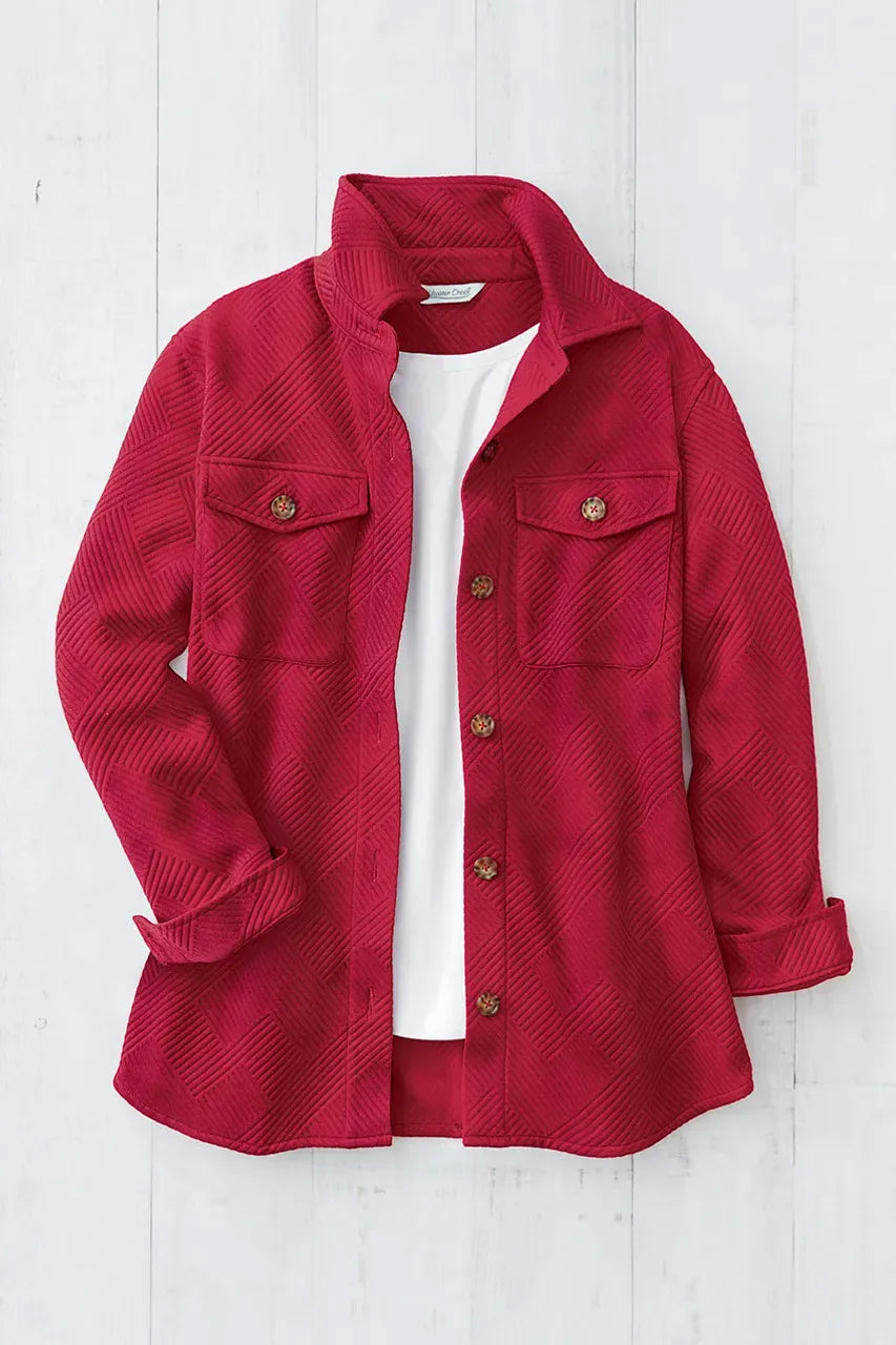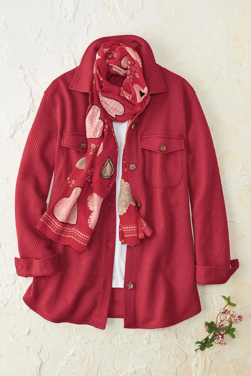 This crossover style makes an impression with chevron-patterned texturing and a soft, drapey feel. Lighter weight makes it perfect for casual layering.