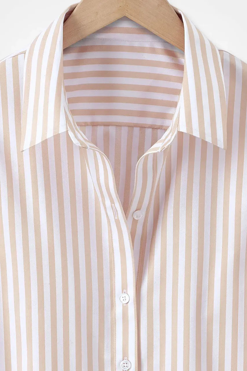A clean-lined look in our essential, wrinkle-free no-iron striped shirt. Horizontal stripes add contrast on the back yoke, with reinforced front placket and curved hem.