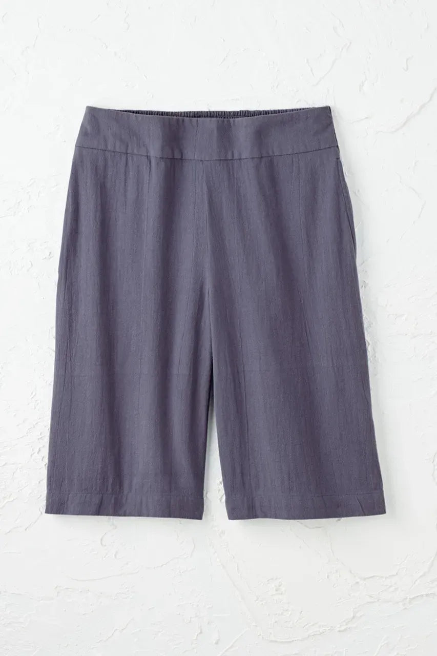 Product Description Take summer in stride with these easygoing, knee-length shorts – lightweight and breezy in our gently crinkled cotton. Smocked elastic waist in back with flat front, plus front slit pockets.