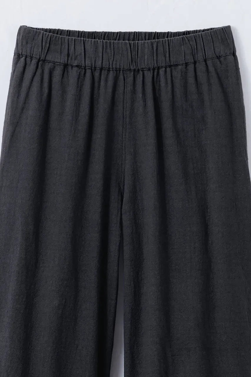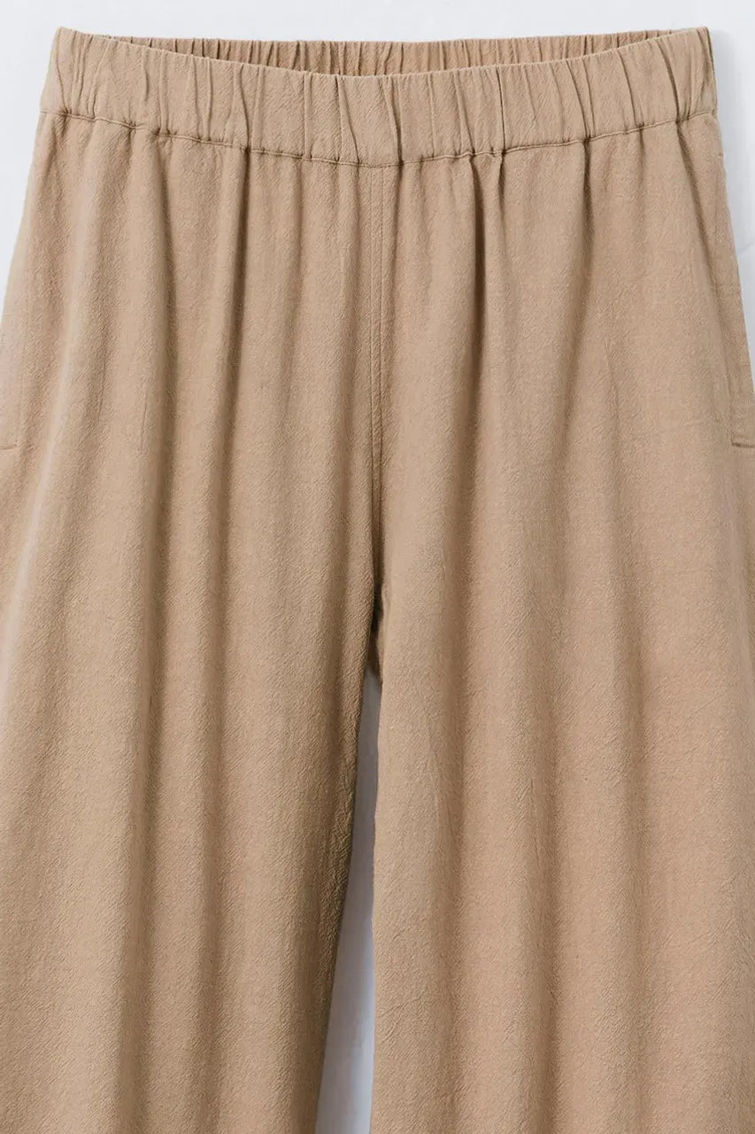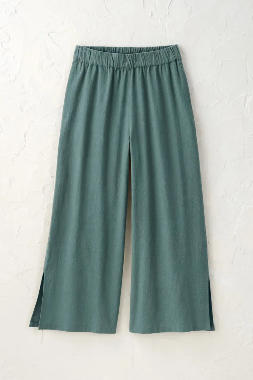Enjoy a vacation vibe, every day. These ultra-lightweight gauze crops are ready for anything – perfect go-to’s for hot days. Pull-on waist, long side slits, on-seam pockets. Relaxed through hips.