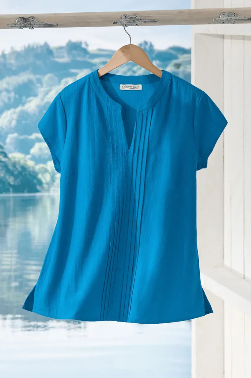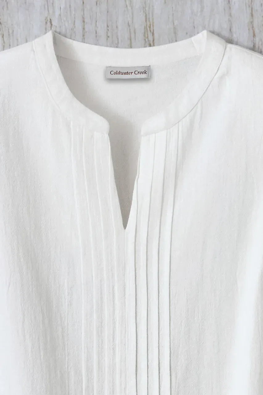 Product Description Our favorite lightweight crinkled cotton, in a silhouette that works for endless summer looks. Pintucked front, with banded collar and bust darts.