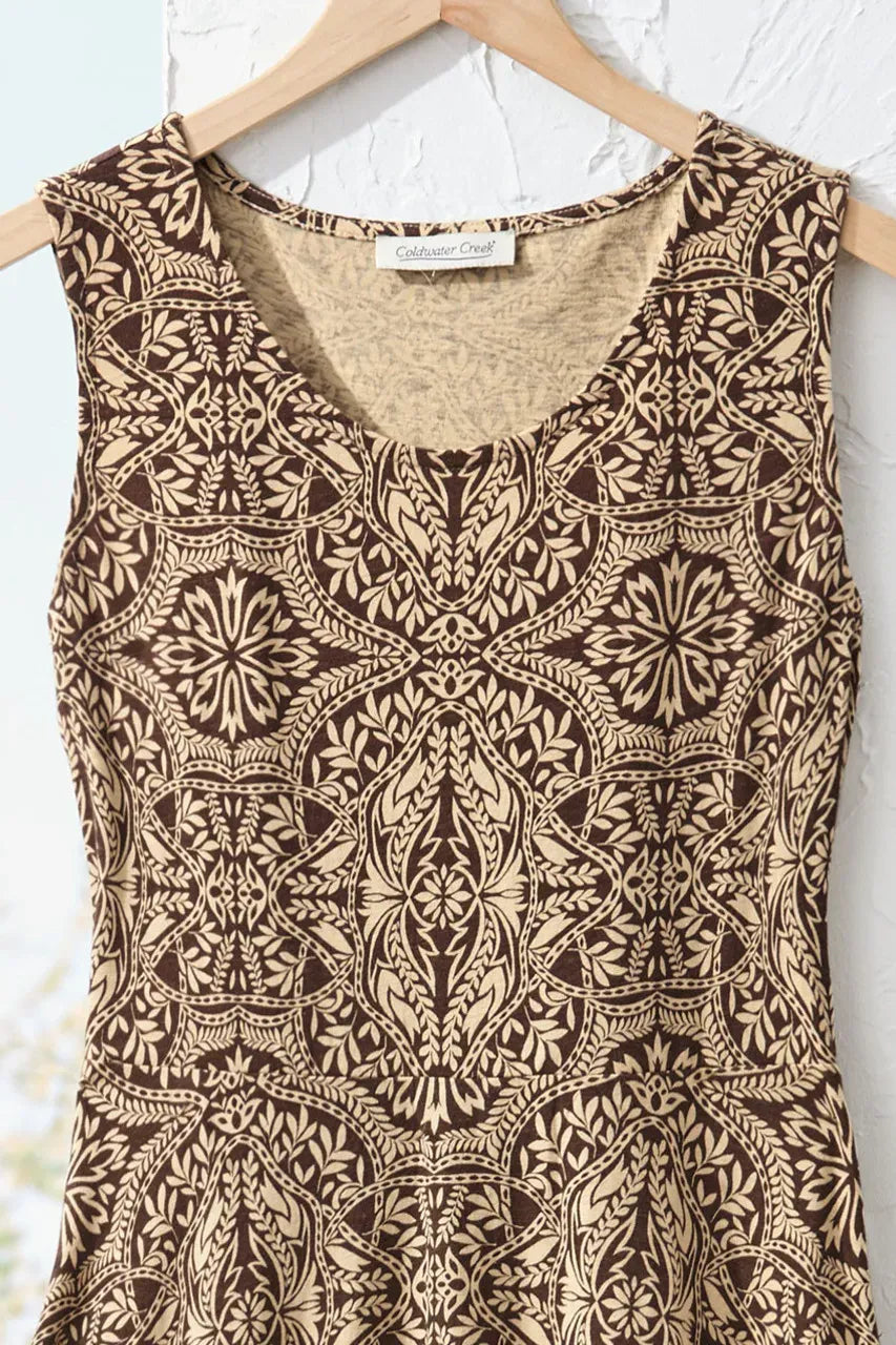Product Description Our go-anywhere knit dress, in a fresh shorter length – comfortable and breathable in cotton slub, with a lively batik-inspired print. Slipover style features a flattering waist seam, releasing into a full, drapey skirt with side-seam pockets.