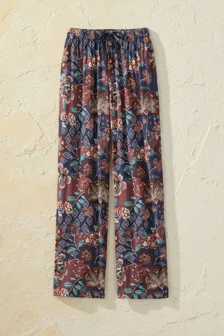 Product Description Easy, lightweight pants for any day of the week, patterned with a mix of artful florals and subtle geometrics. Pull-on style is smooth and drapey, with an elastic drawstring waist and on-seam pockets.