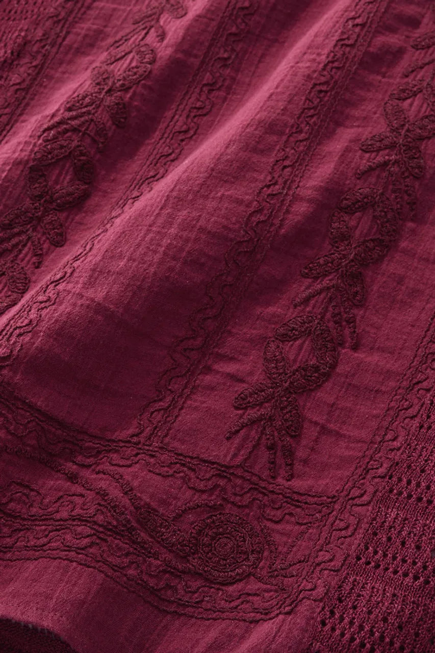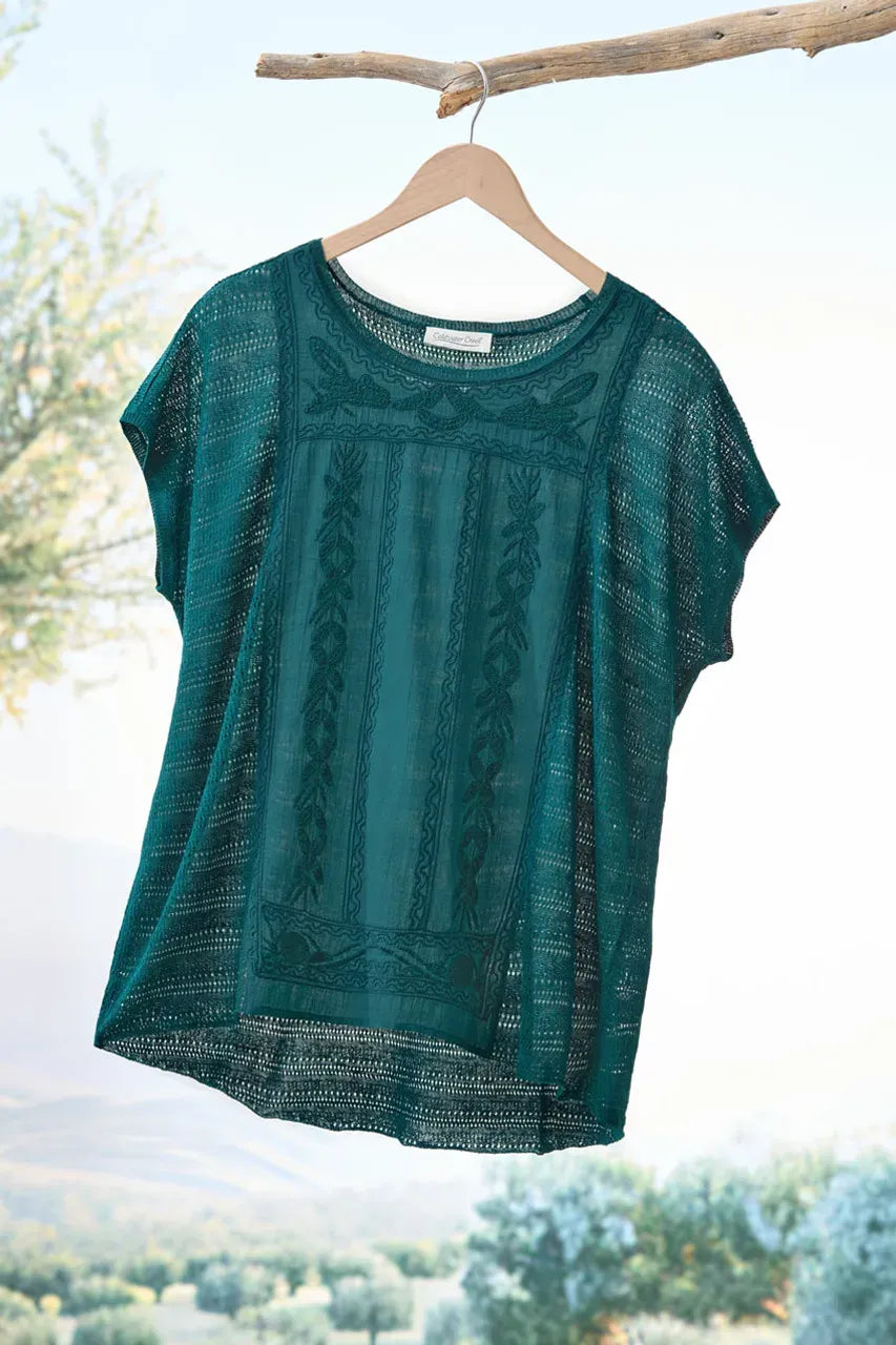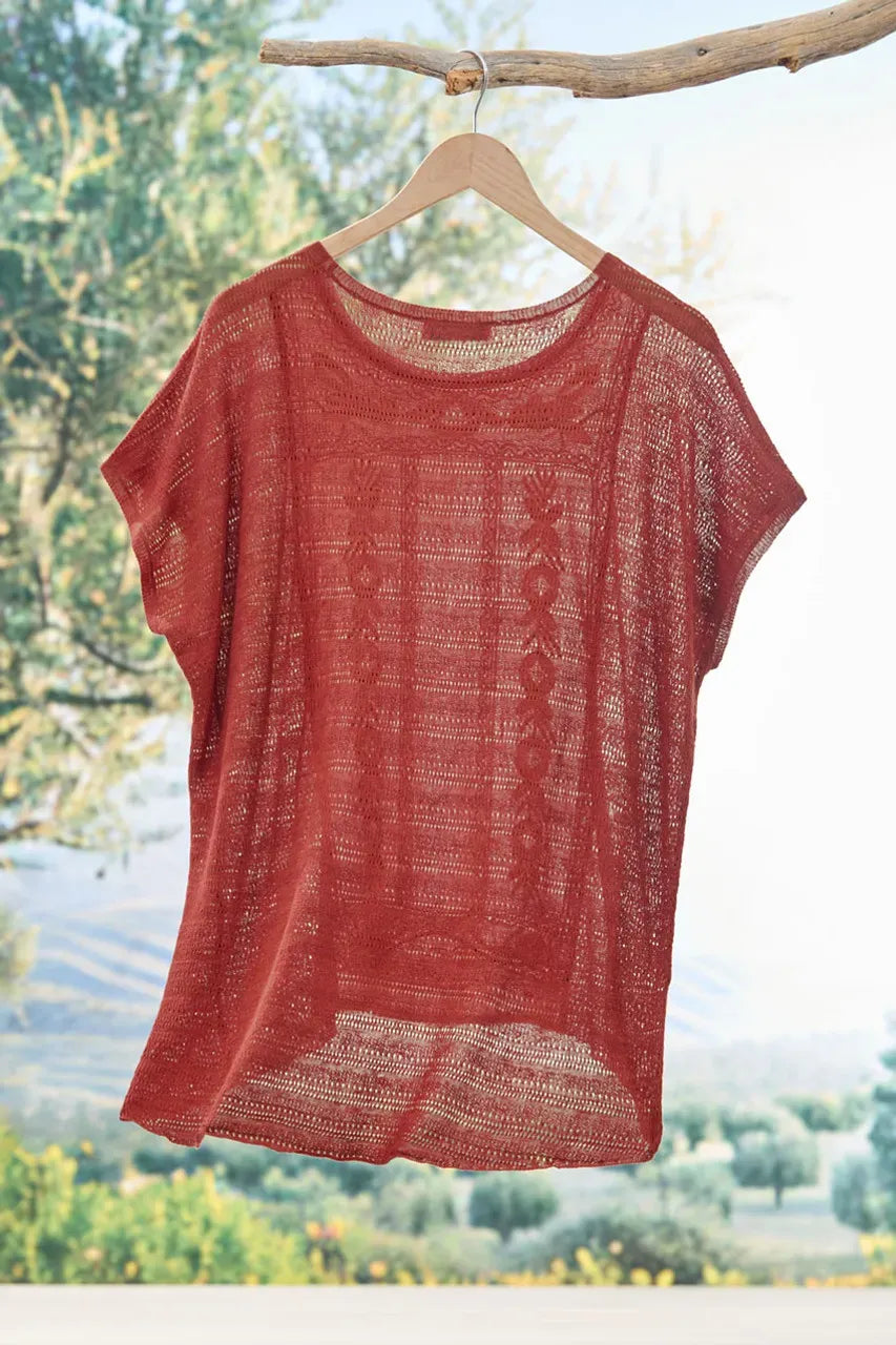 Product Description This tonal sweater blends two textures for one-of-a-kind artistry. This beautifully detailed top is light and airy, with a loose knit stitch on the back and sides, and an embroidered woven panel on front. Semi-sheer, pair with a cami for full coverage.