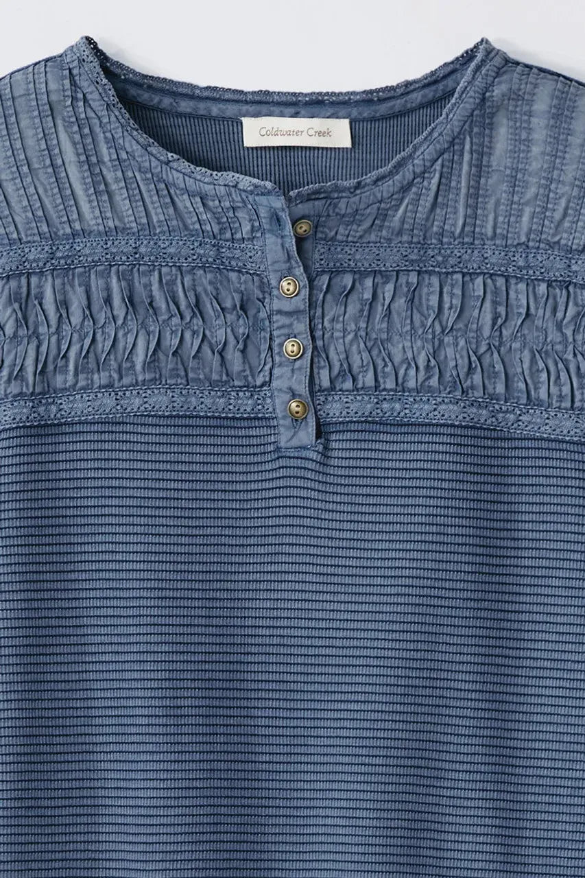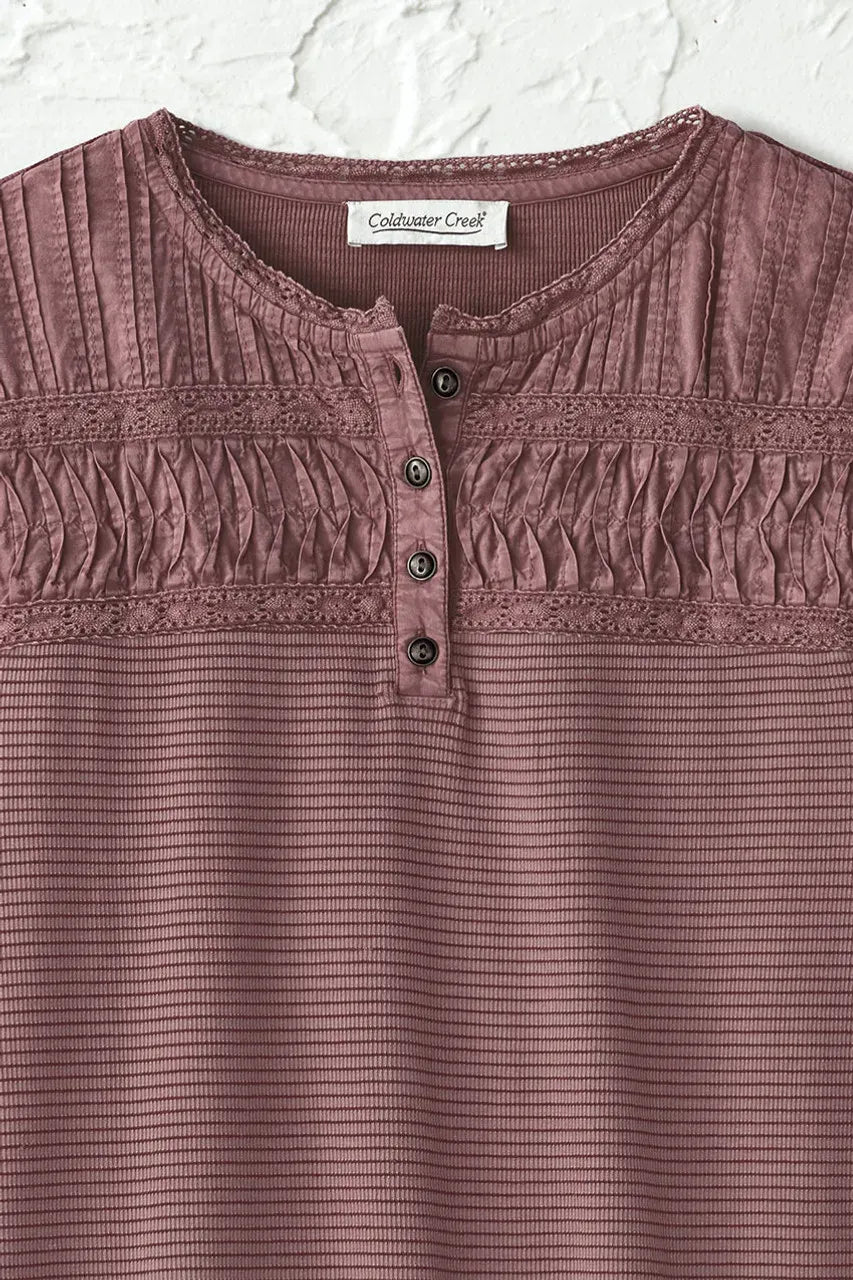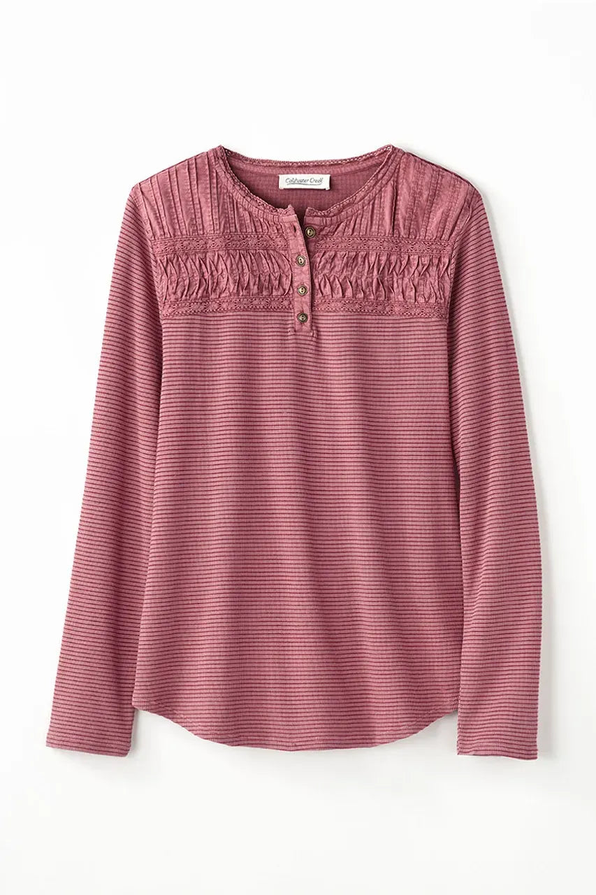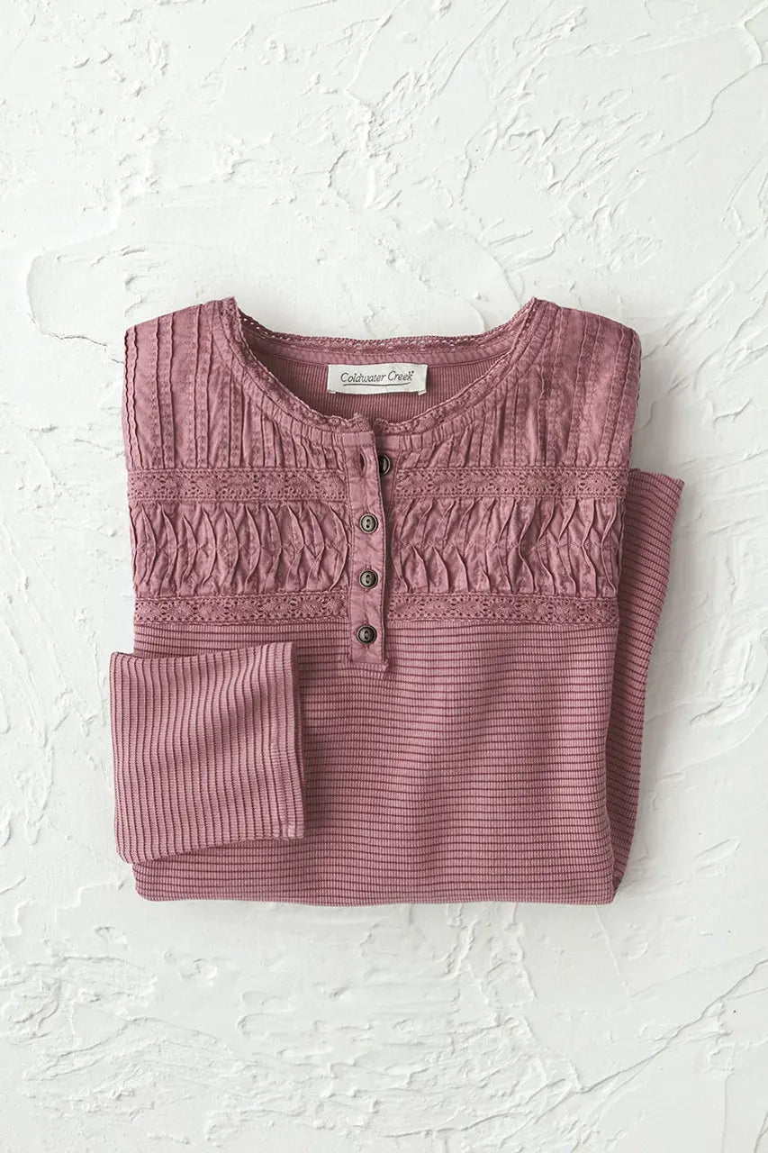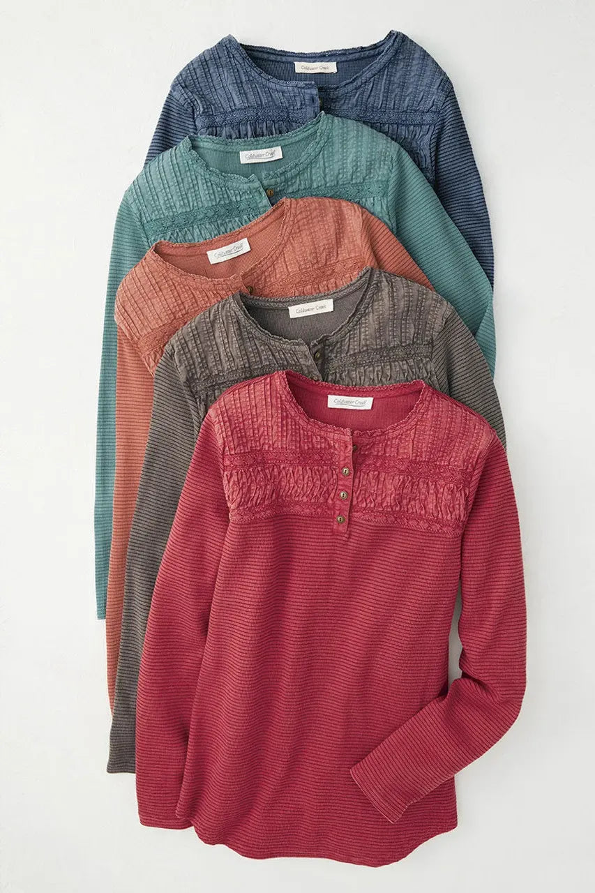 An engaging mix of textures makes this soft pullover a unique piece to collect in every color.