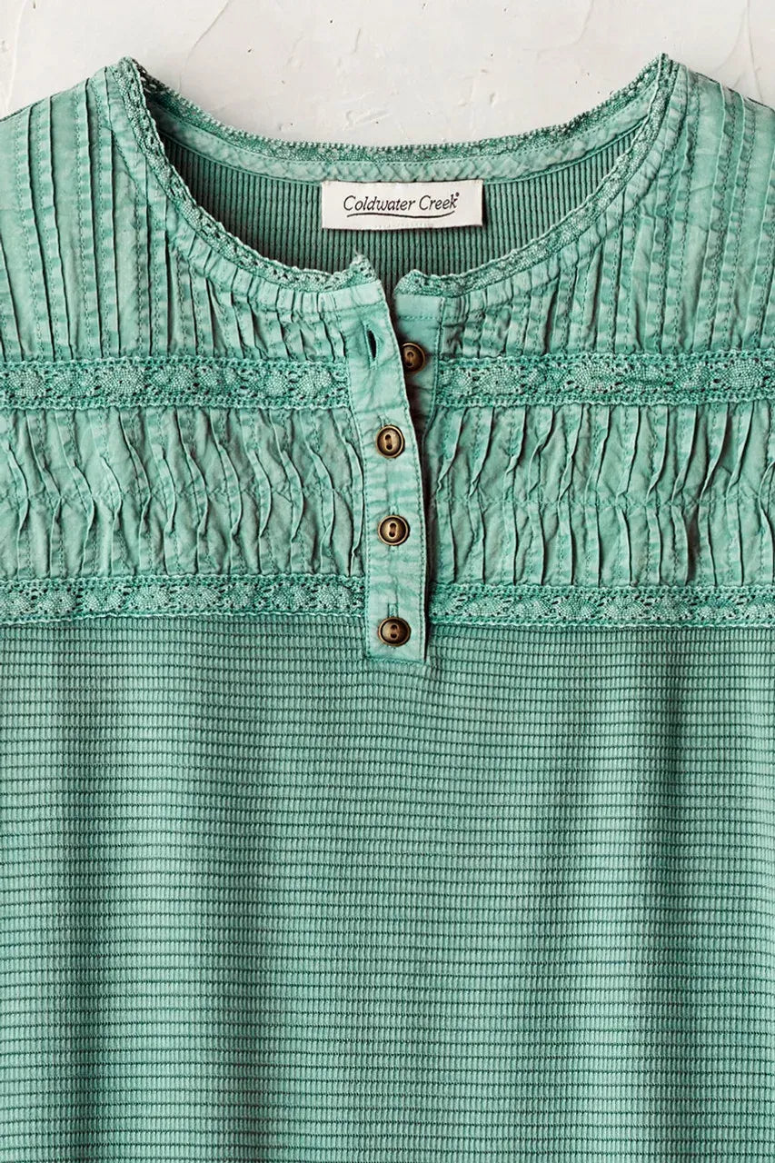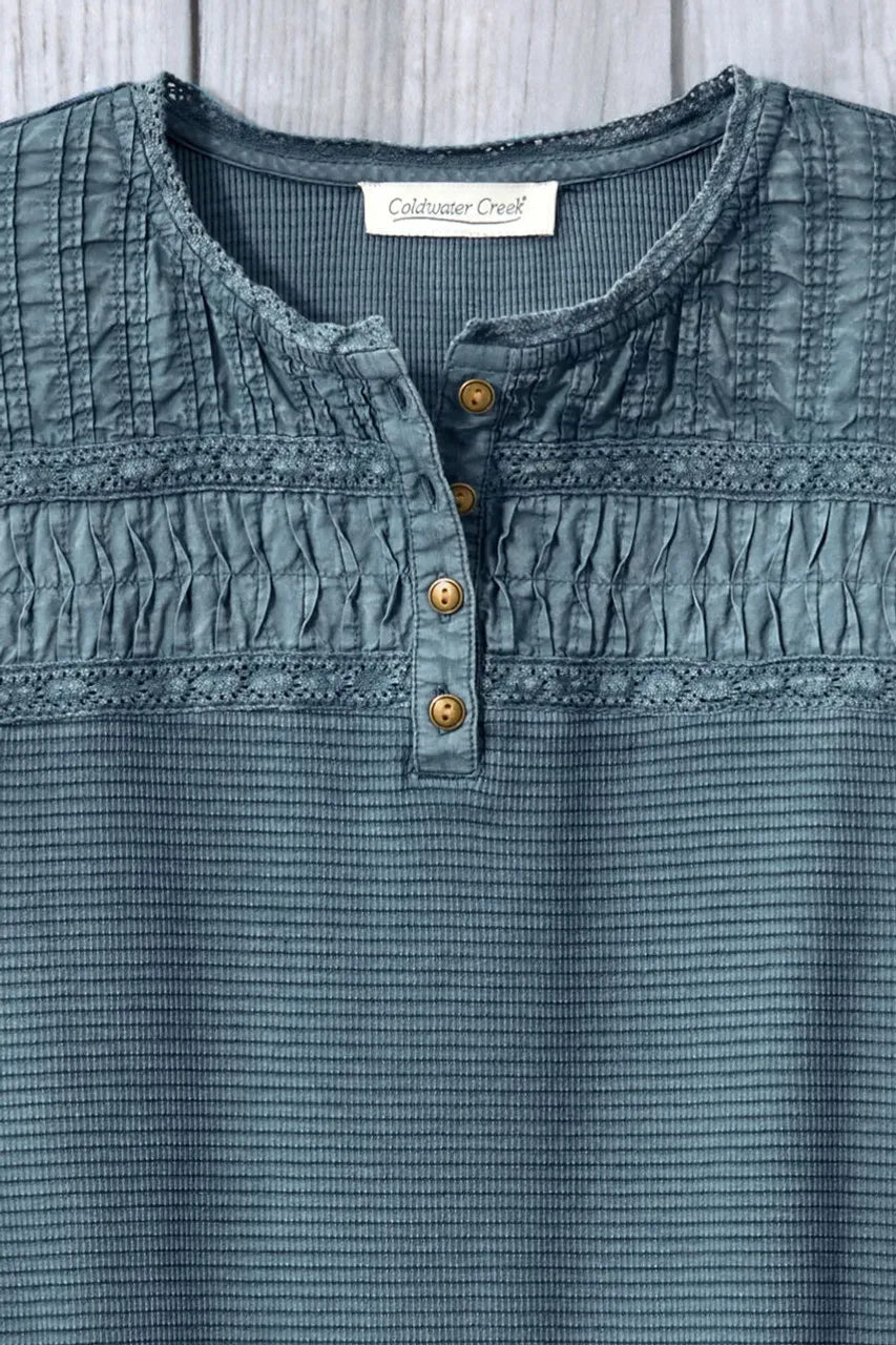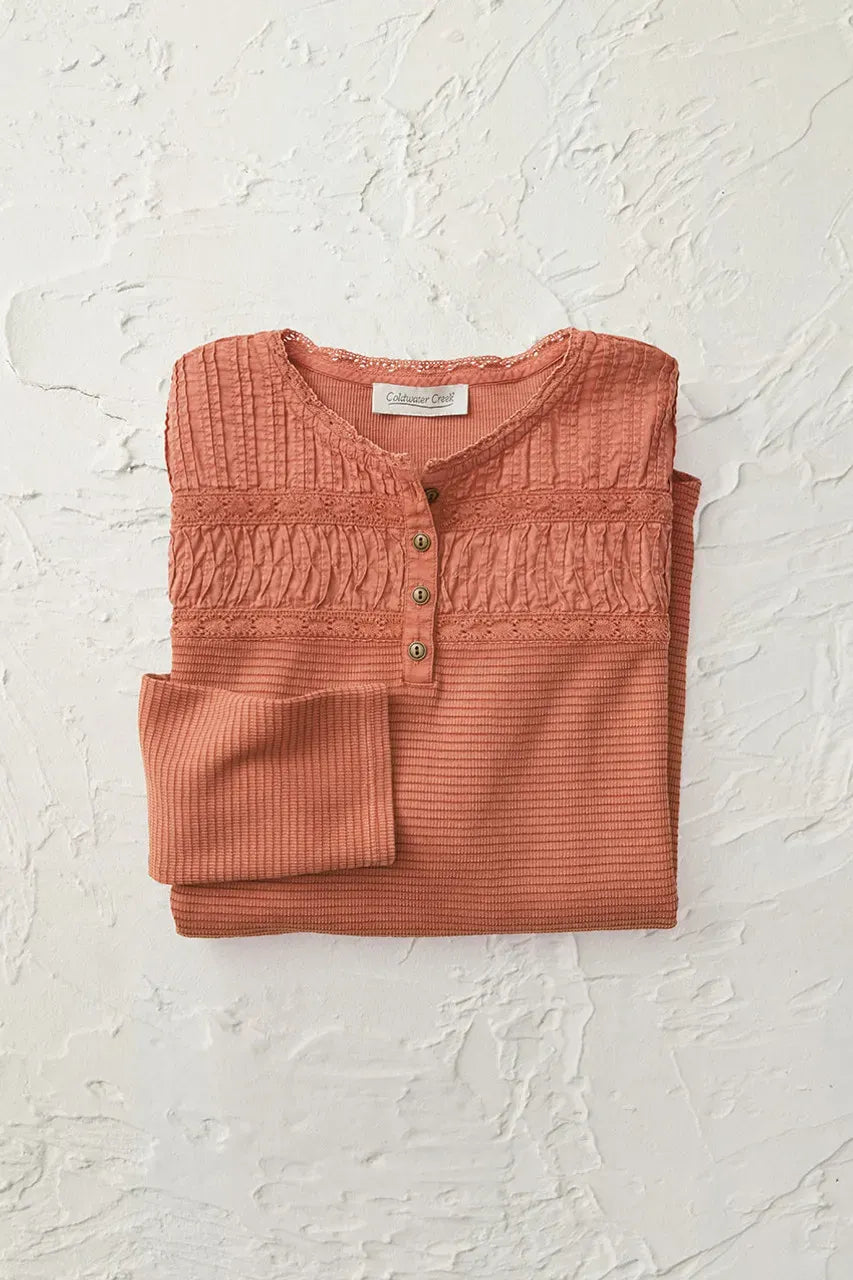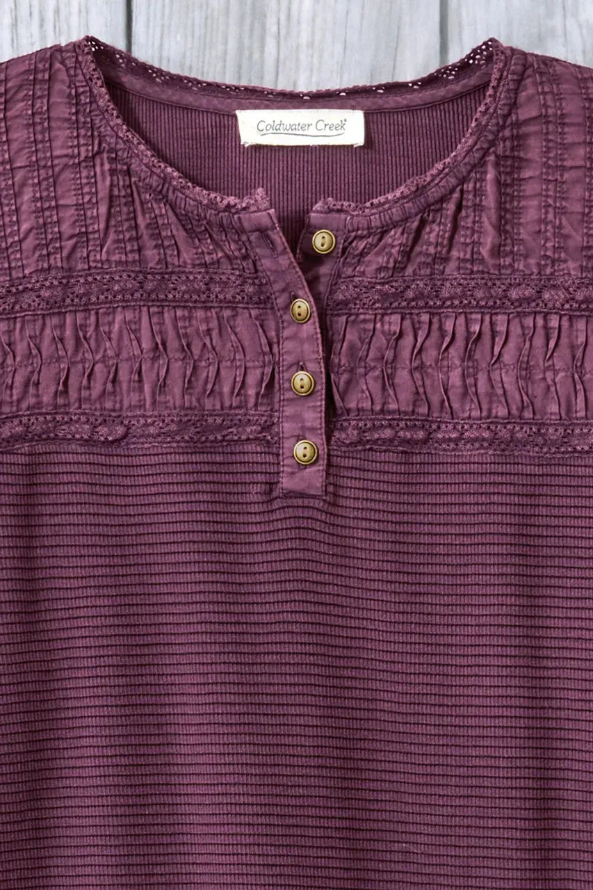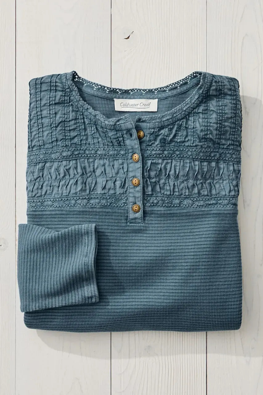 An engaging mix of textures makes this soft pullover a unique piece to collect in every color.