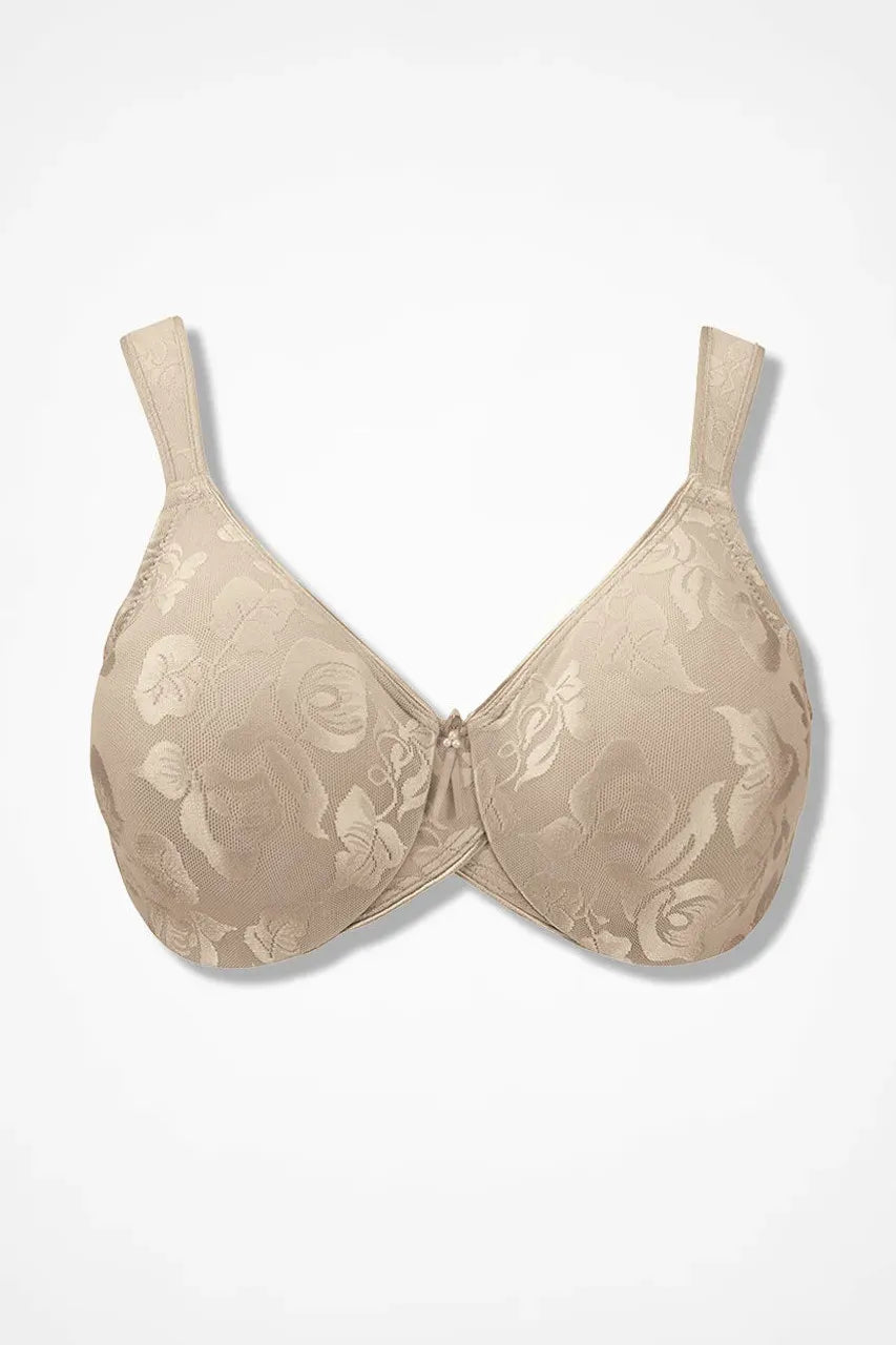 Wacoal’s best-selling ‘bra with a cause’ features a pink ribbon flag on the back for breast cancer awareness. Seamless yet supportive cups and straps that stay in place offer supreme comfort. Beautiful calla-lily embossed jacquard fabric. Imported.