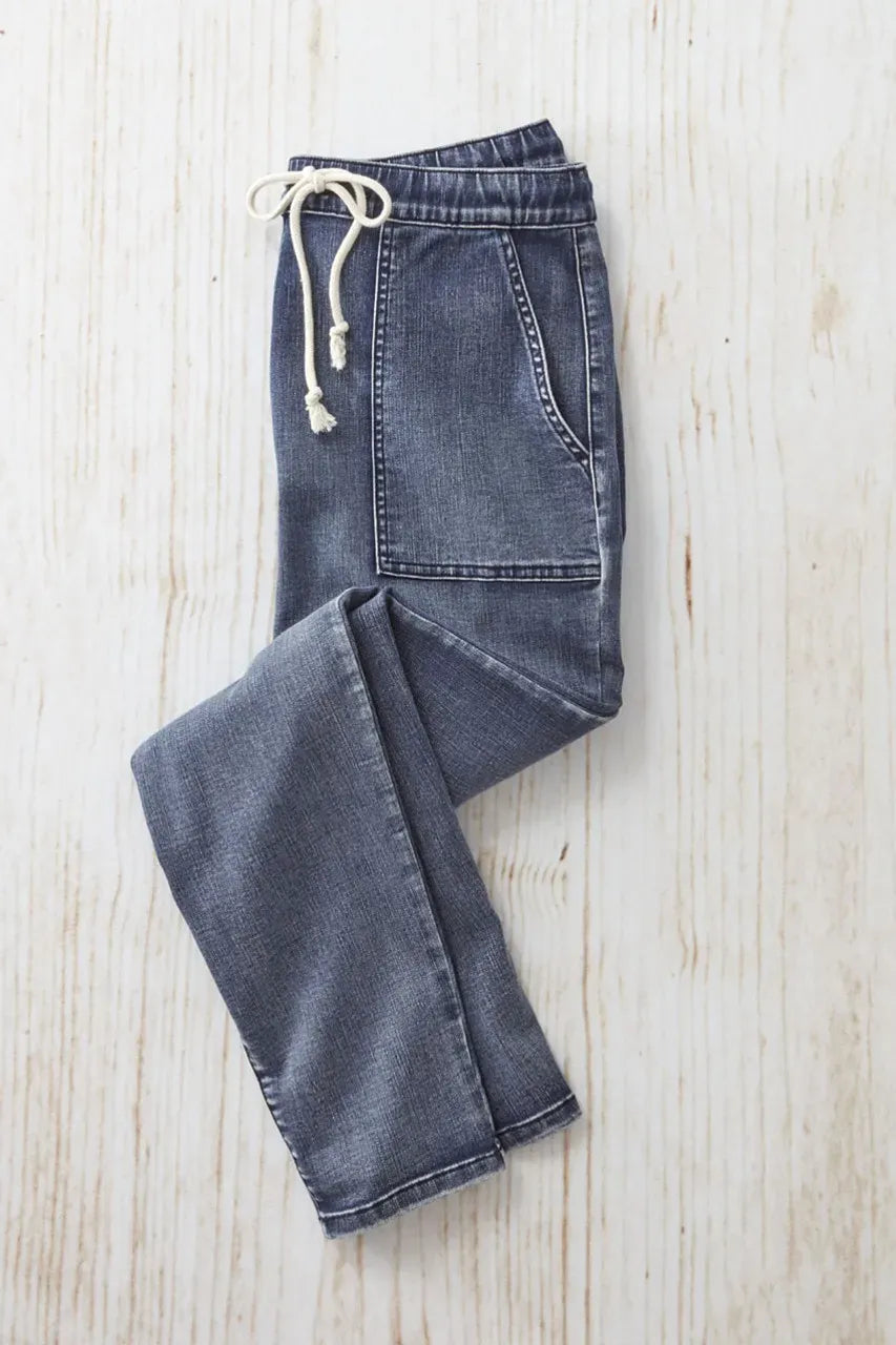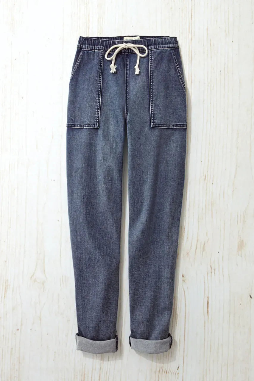 Product Description The summer jeans you’ll want to wear everywhere. Relaxed and lightweight, with a pull-on waist and rope drawstring, plus front square pockets and back welt pockets. Ankle length, to cuff or not.