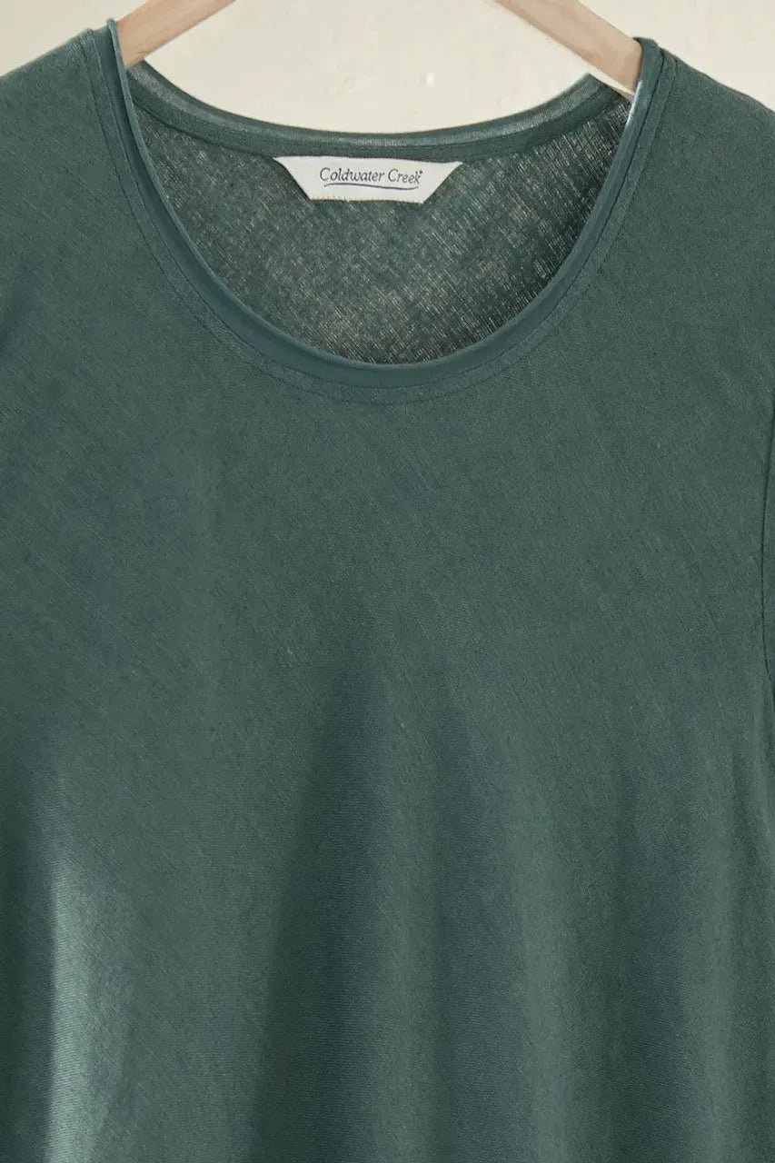 A contemporary dress with unexpected flow. This light slipover style features a swingy, seamed handkerchief hem – in European-grown linen blended with viscose for a soft, smooth touch.