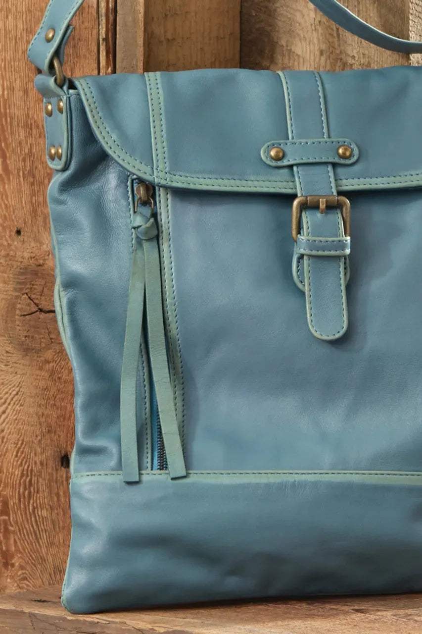 Product Description The luxurious look of broken-in leather, with convenient top zip and decorative front strap.