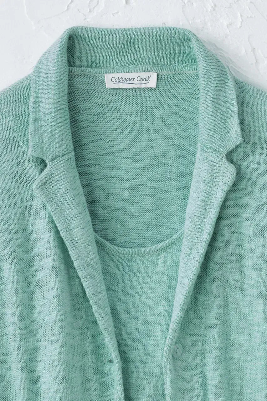 The ultra-light layer with a refined silhouette. Our soft, slub knit cardi has a lapel collar, curved hem.
