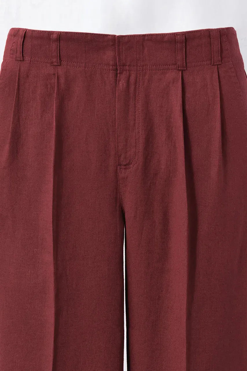 Product Description So easy and breezy in a lightweight linen blend with relaxed drape and movement. Bar-and-zip closure with back elastic waist.