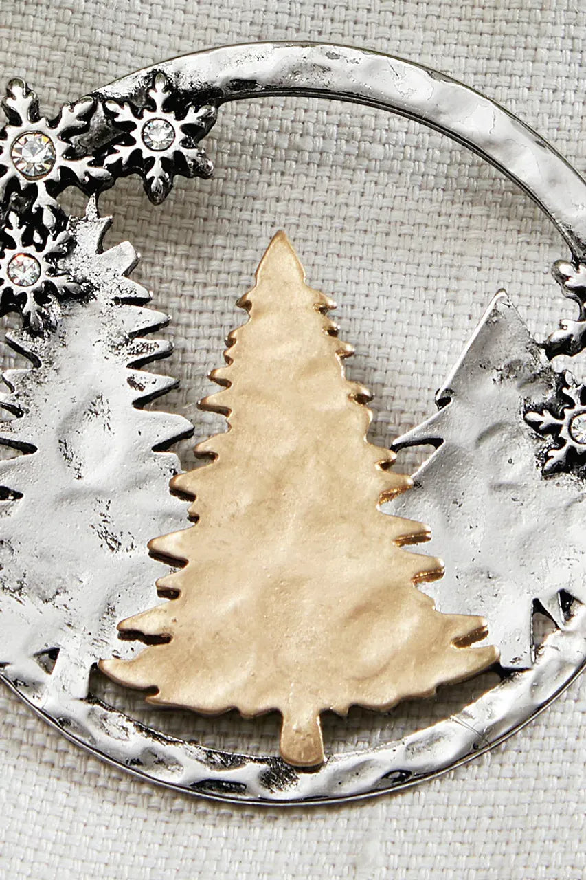 Capture the magic of a serene forest in two-tone metal, sparkled with crystalline snowflakes.